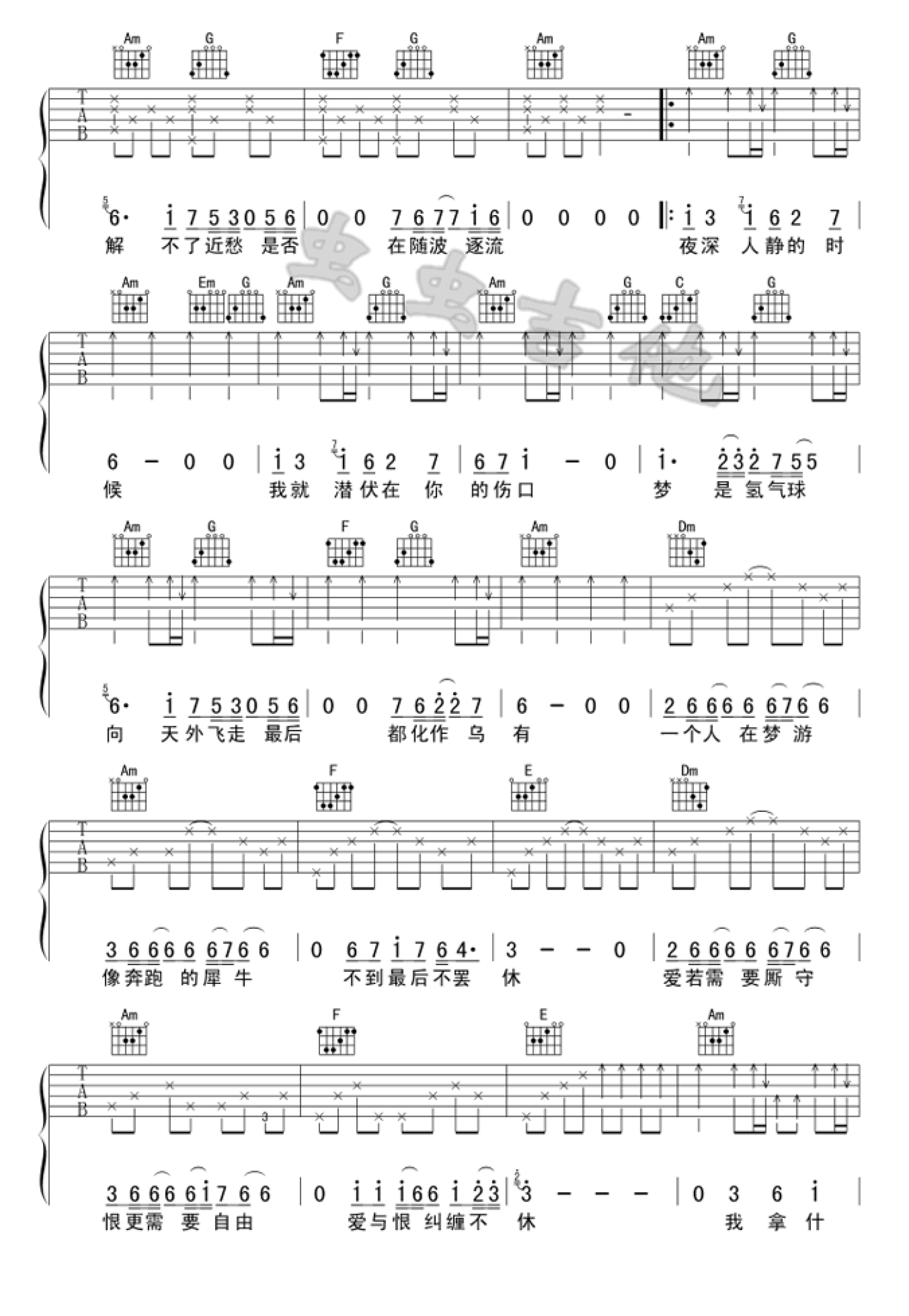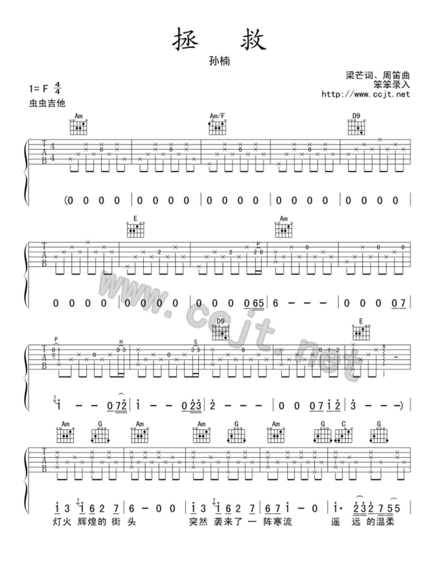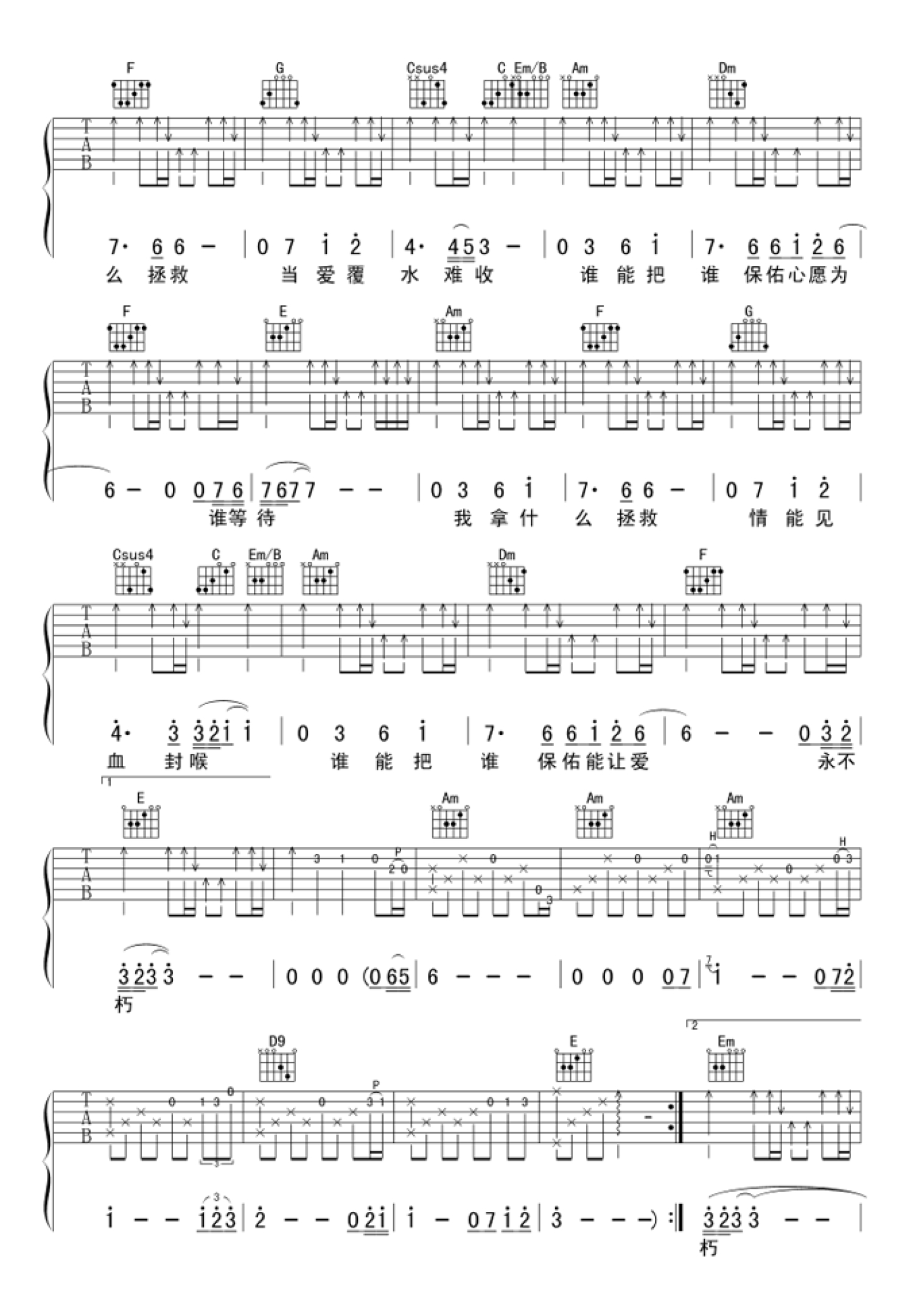 曲谱介绍: 孙楠《拯救》吉他谱_F调吉他弹唱谱