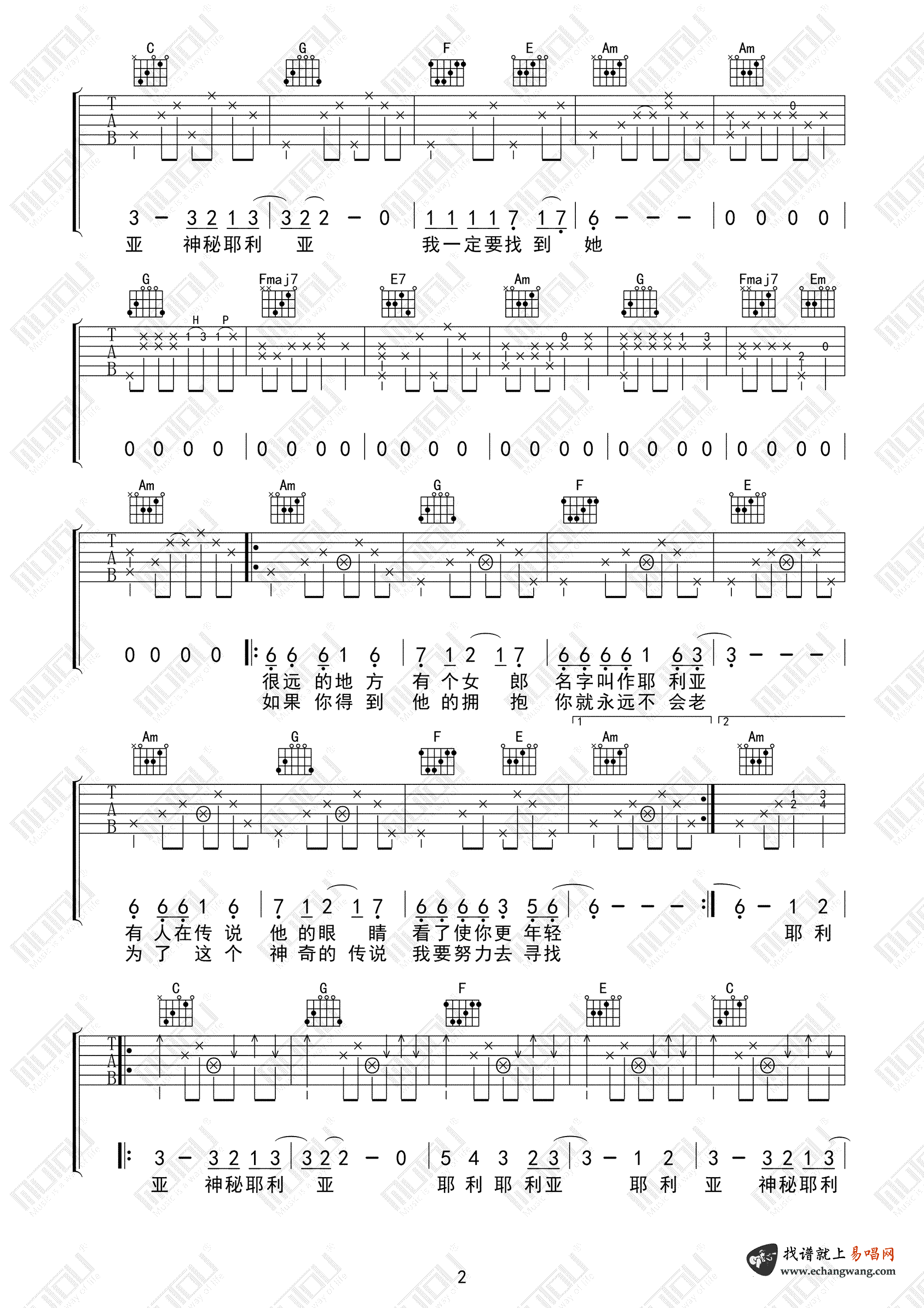 当前位置:琴谱网>吉他弹唱>耶利亚女郎