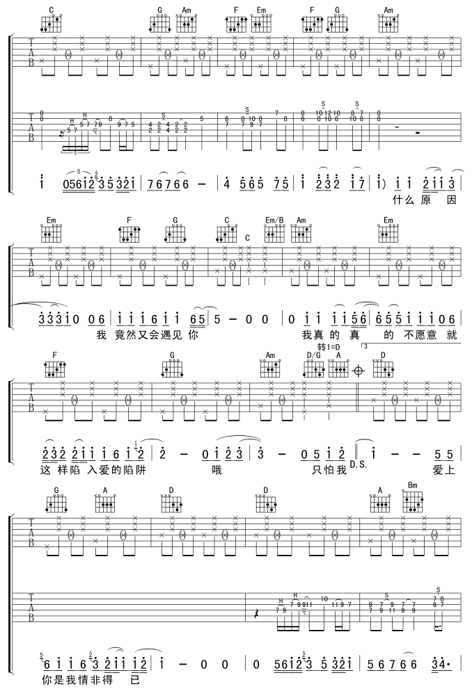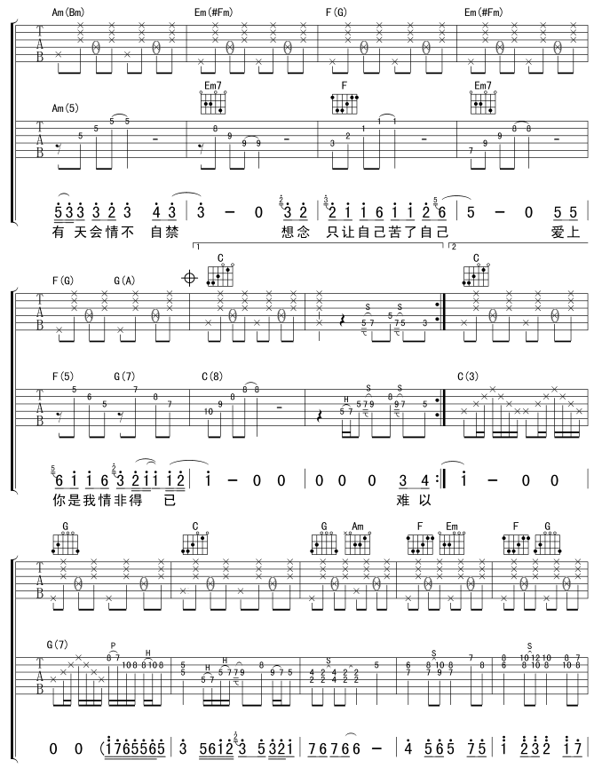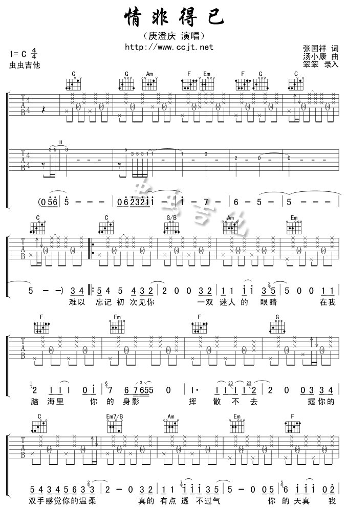 情非得已吉他谱 - 吉他弹唱谱