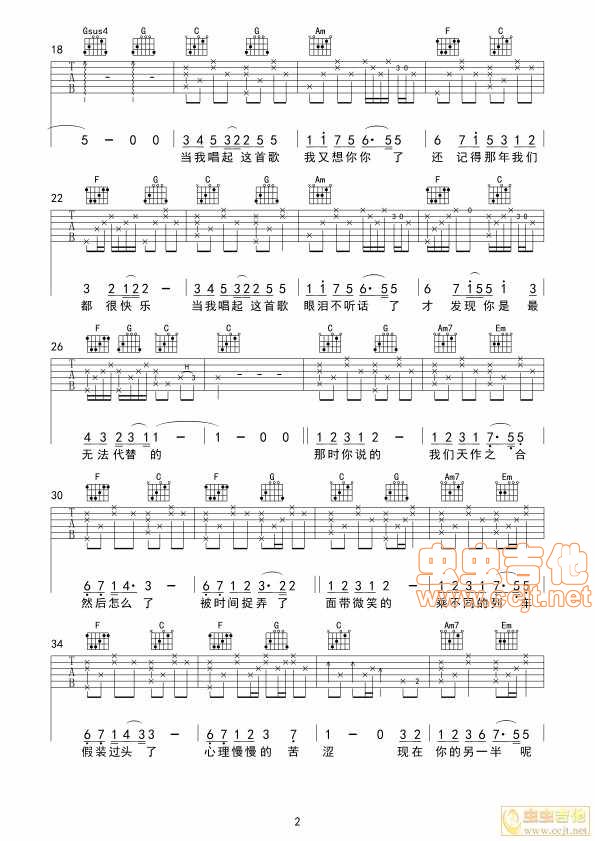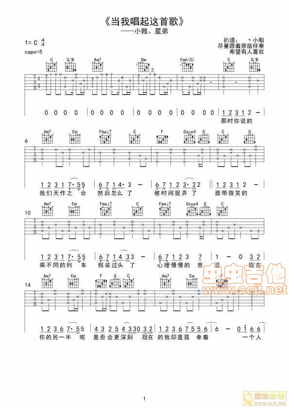 曲谱介绍: 《当我唱起这首歌》吉他弹唱谱,共有3张高清图谱。