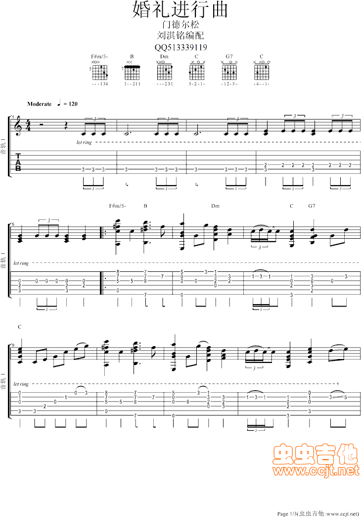 婚礼进行曲吉他谱 - 门德尔松 - 吉他弹唱谱