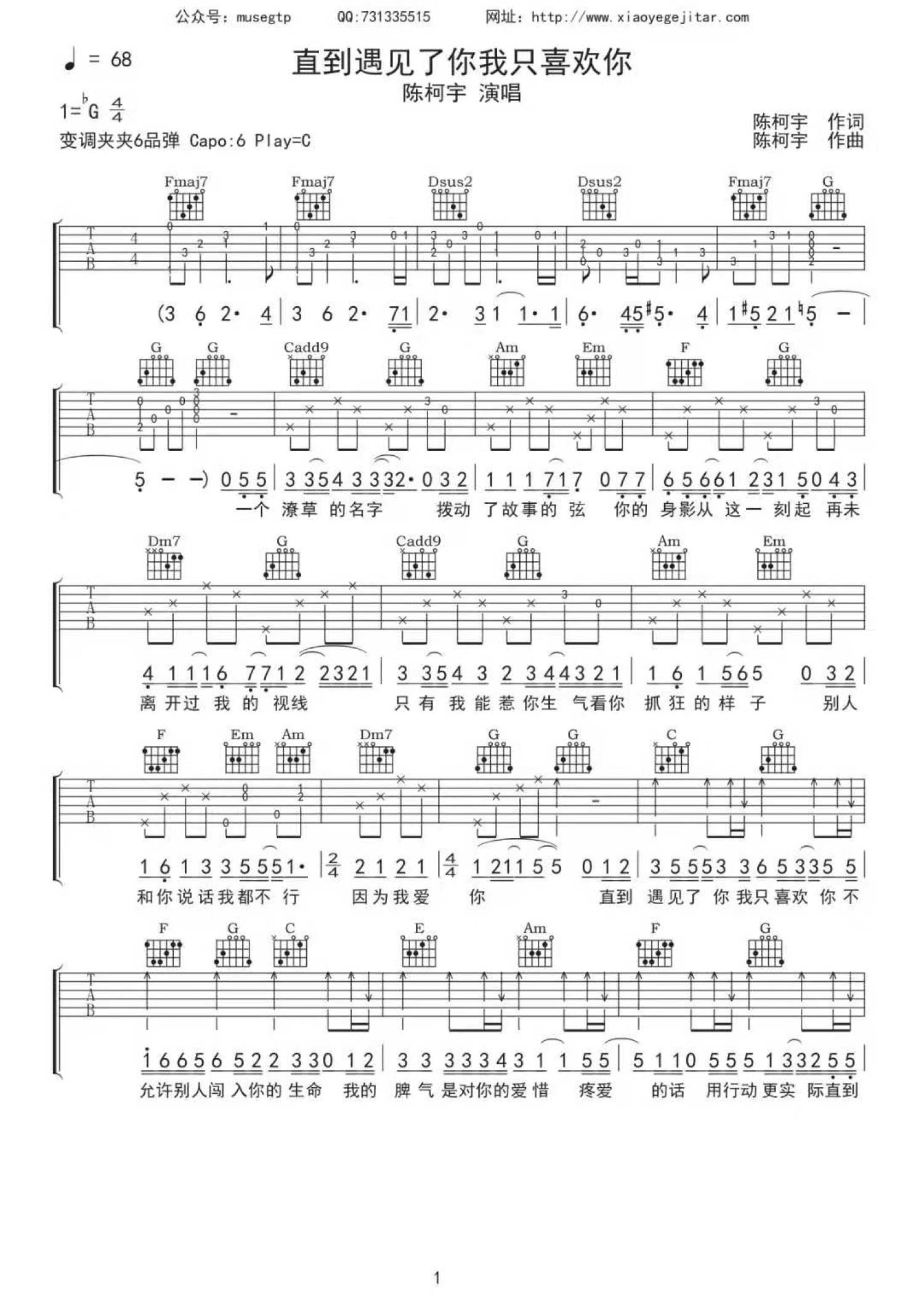 曲谱介绍: 陈柯宇《陈珂宇》吉他谱_C调吉他弹唱谱