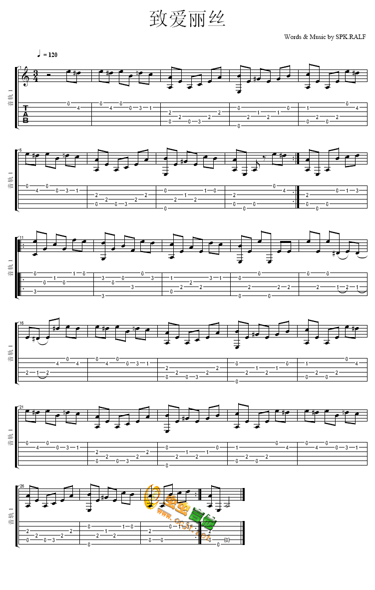 当前位置:琴谱网>吉他弹唱>致爱丽丝