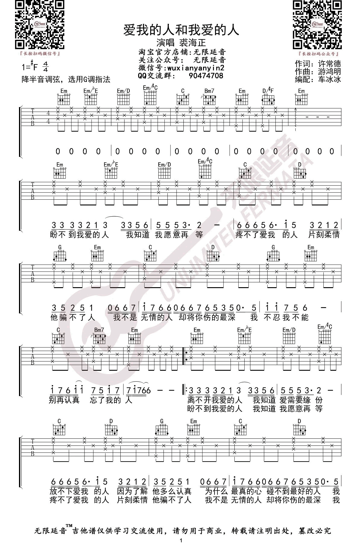 曲谱介绍: 裘海正《爱我的人和我爱的人》吉他弹唱谱,共有2张高清图谱,免翻页排版设计。