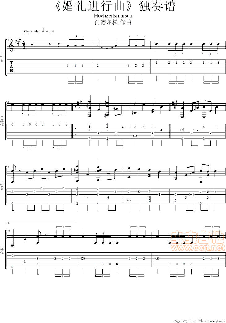 婚礼进行曲吉他谱 - 吉他独奏谱
