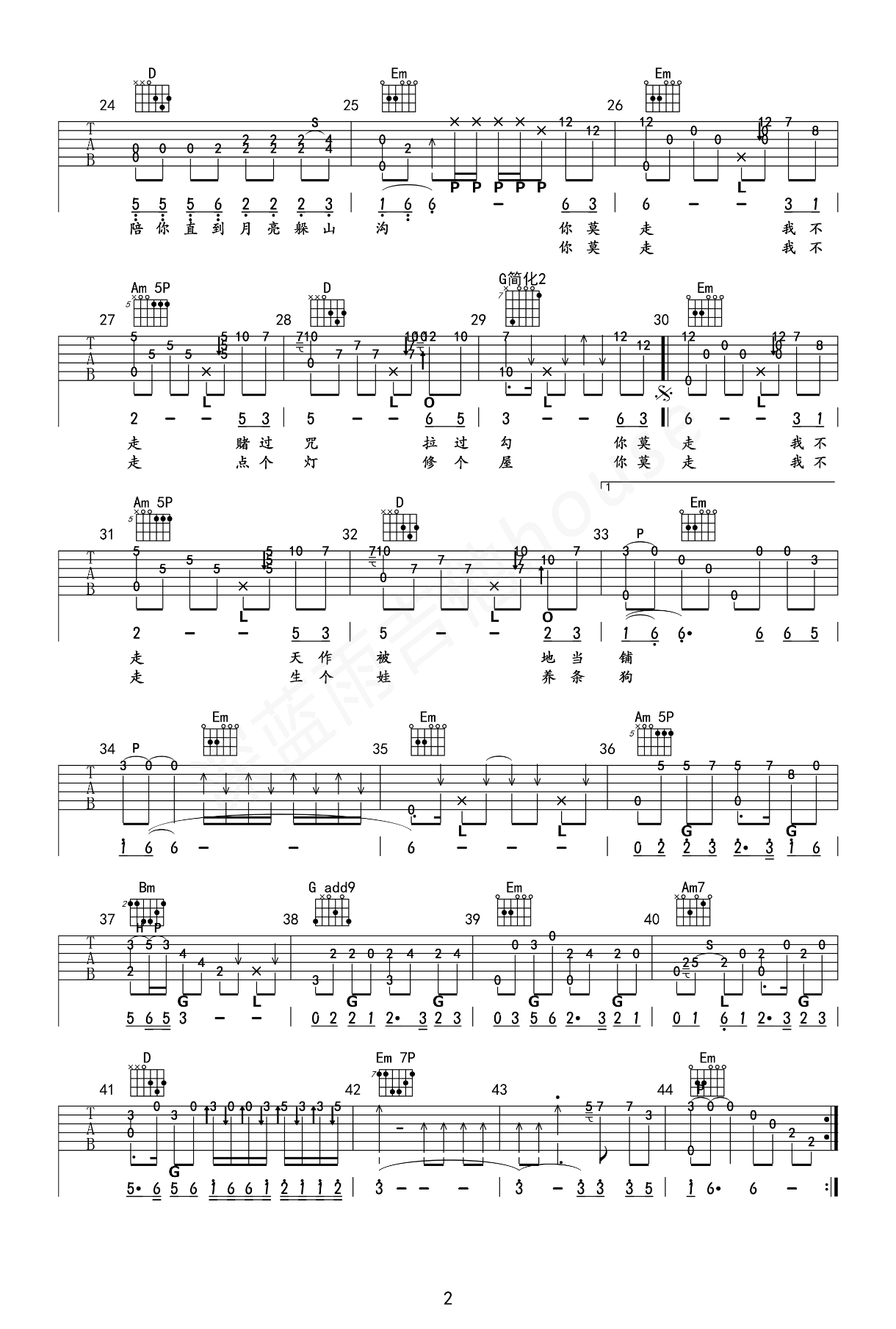 你莫走吉他谱 - 山水组合 - 吉他独奏谱