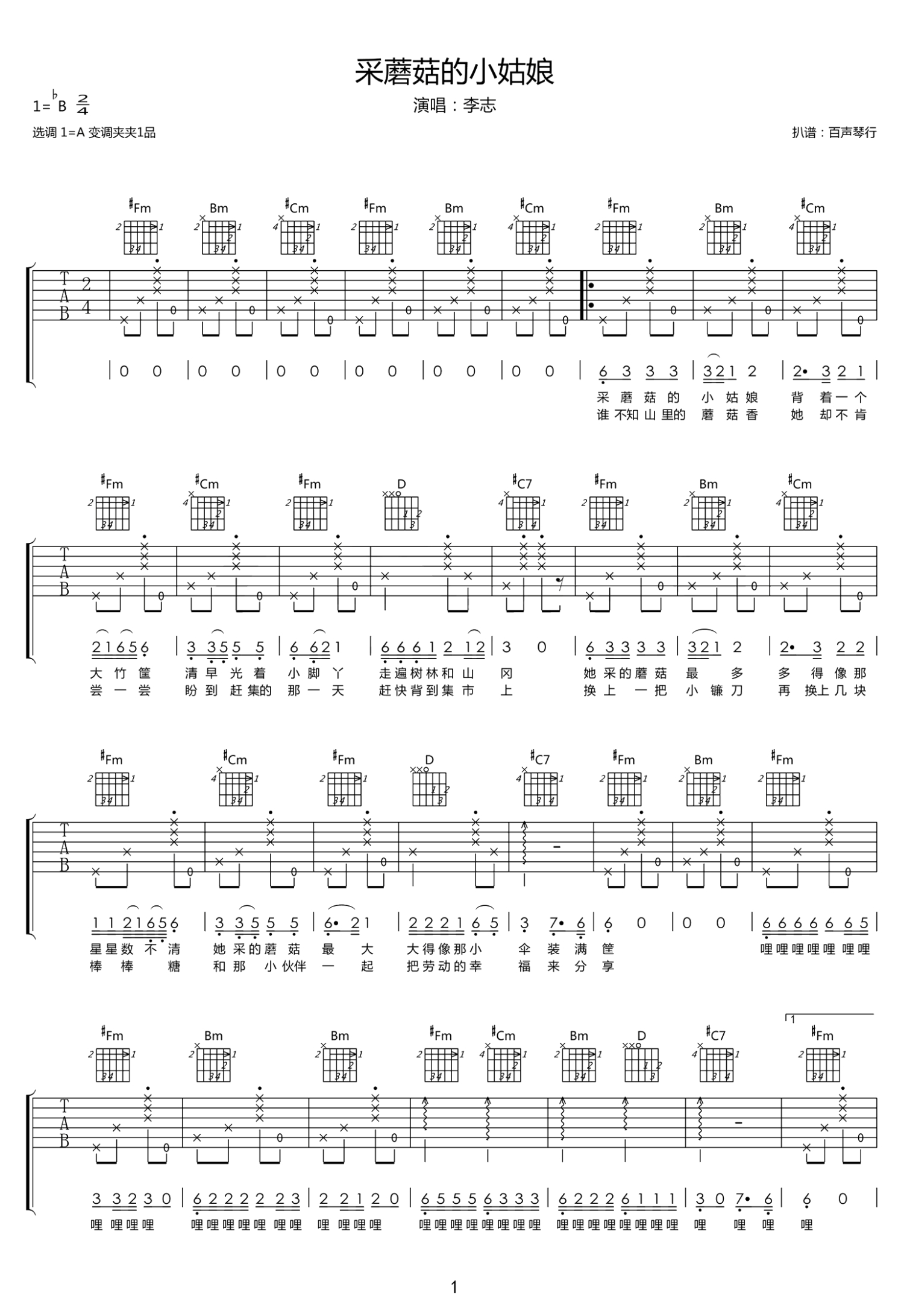 当前位置:琴谱网>吉他弹唱>采蘑菇的小姑娘