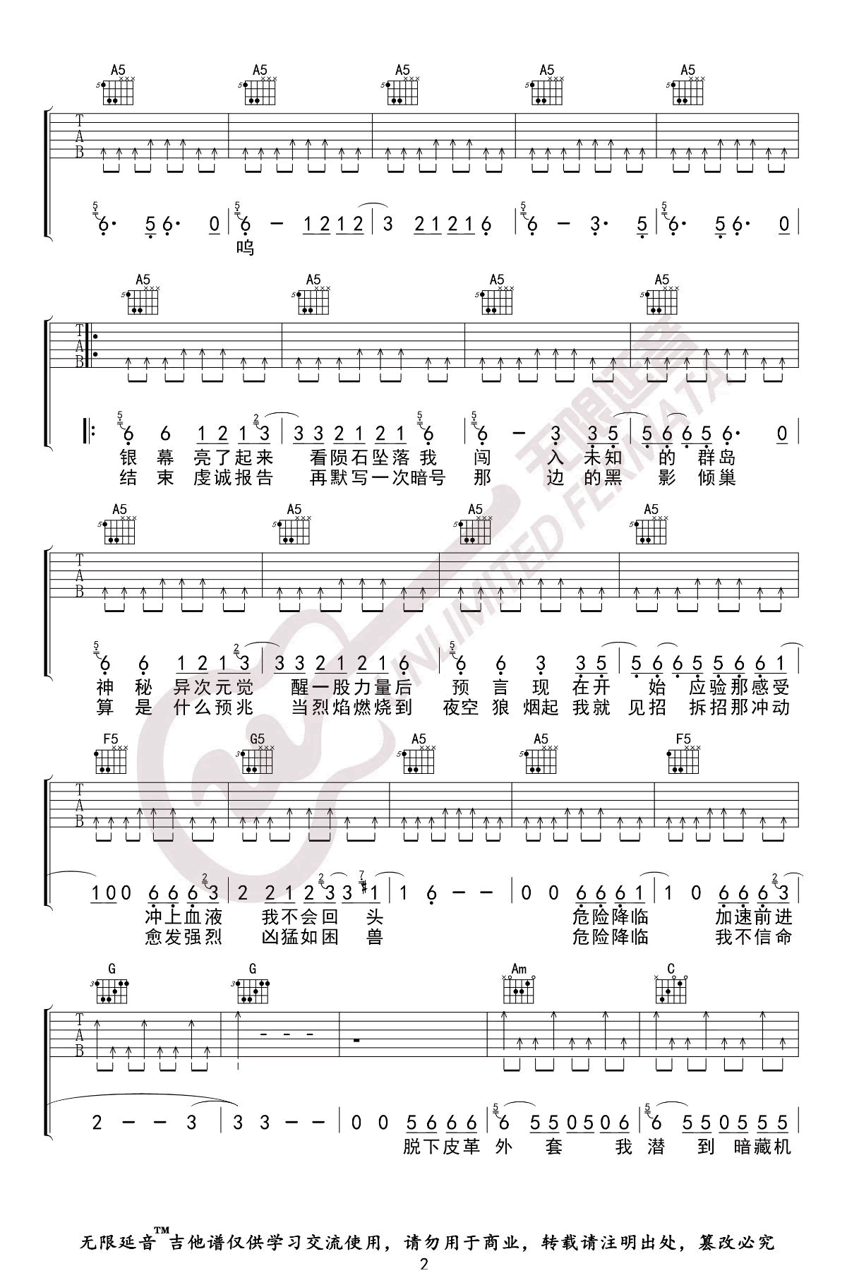 荒野魂斗罗吉他谱 - 华晨宇 - 吉他弹唱谱