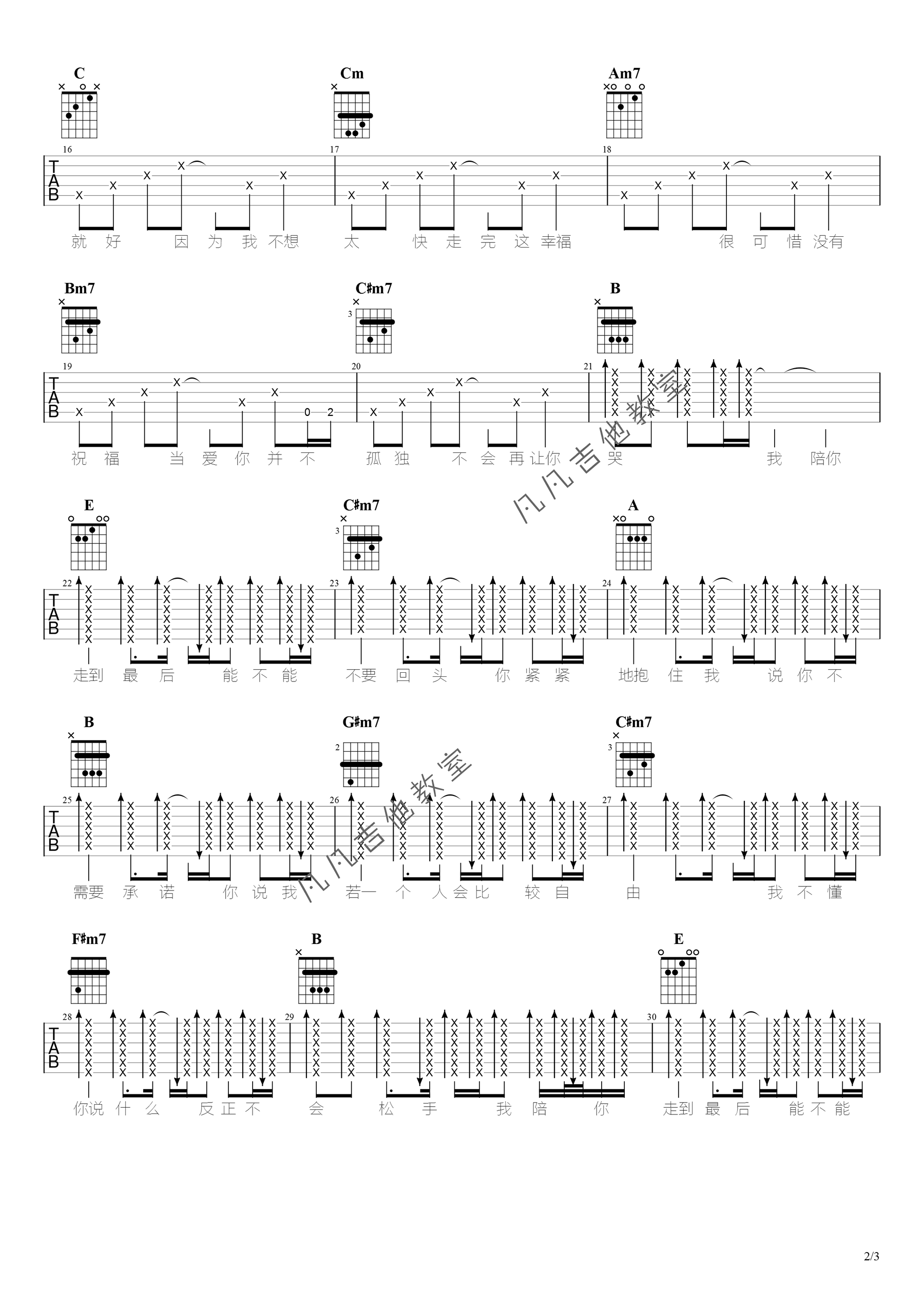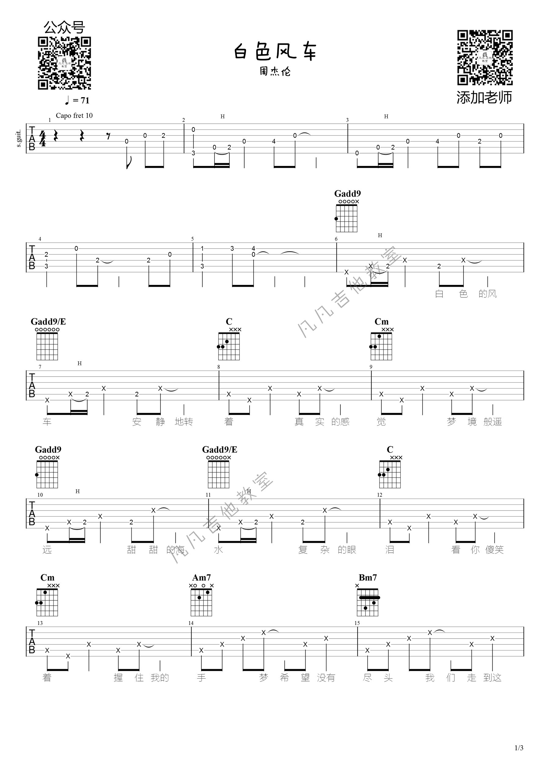曲谱介绍: 周杰伦《白色风车》吉他弹唱谱,共有3张高清图谱。