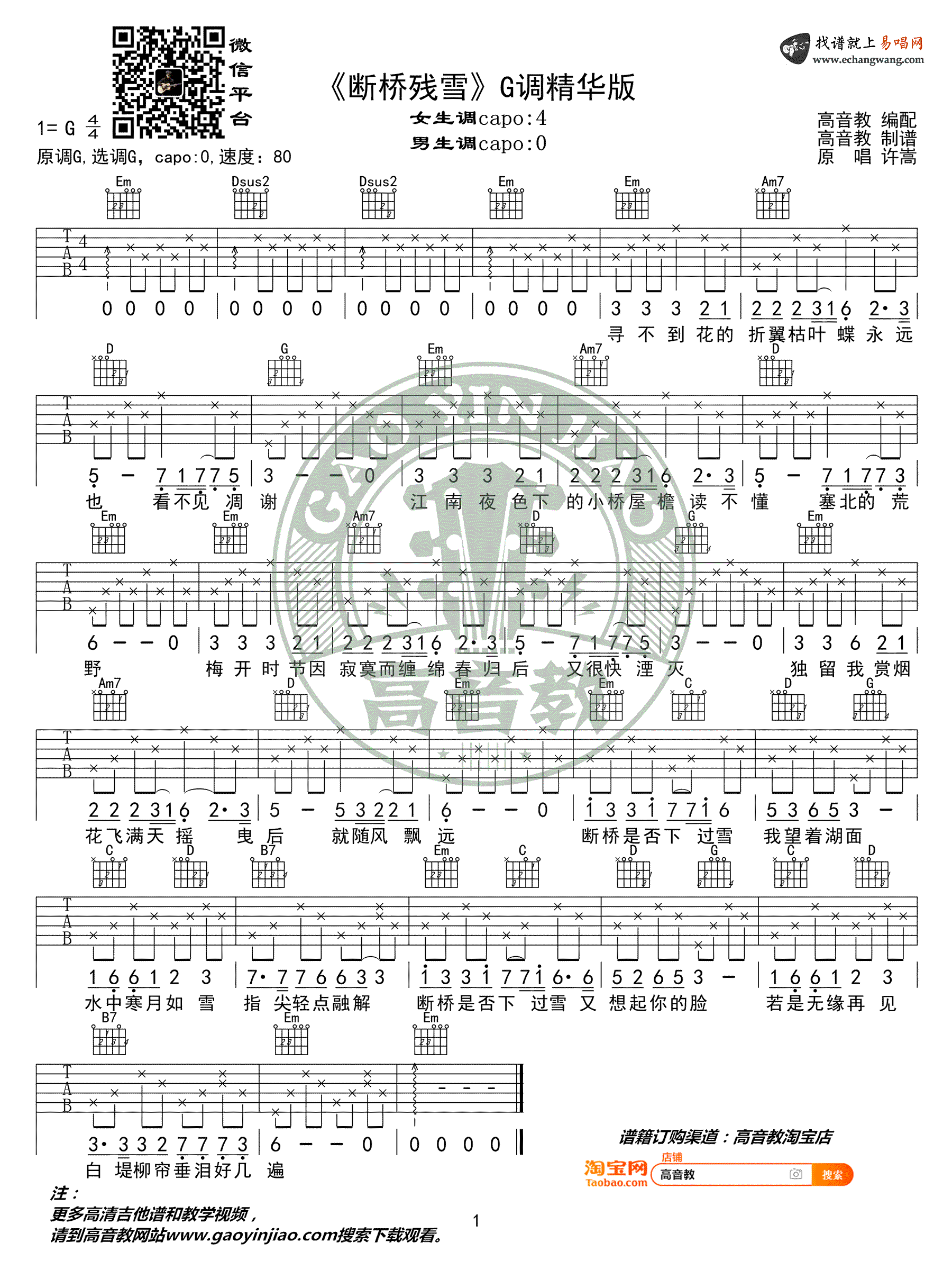 曲谱介绍: 许嵩《断桥残雪》吉他弹唱谱,共有1张高清图谱,免翻页排版设计。