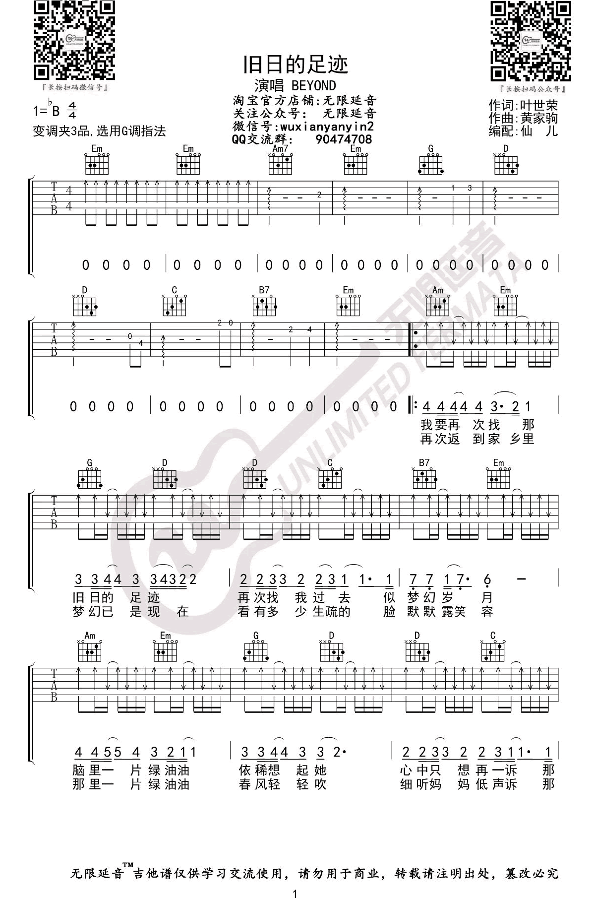 曲谱介绍: Beyond《旧日的足迹》吉他弹唱谱,共有3张高清图谱。