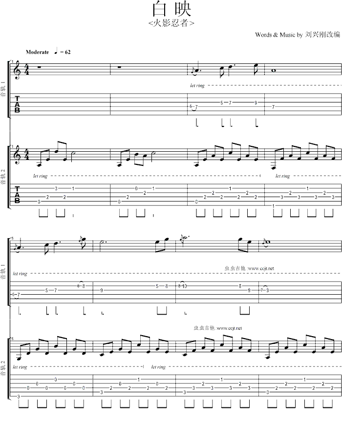火影忍者 白映 图片吉他谱 - 火影忍者 - 吉他弹唱谱