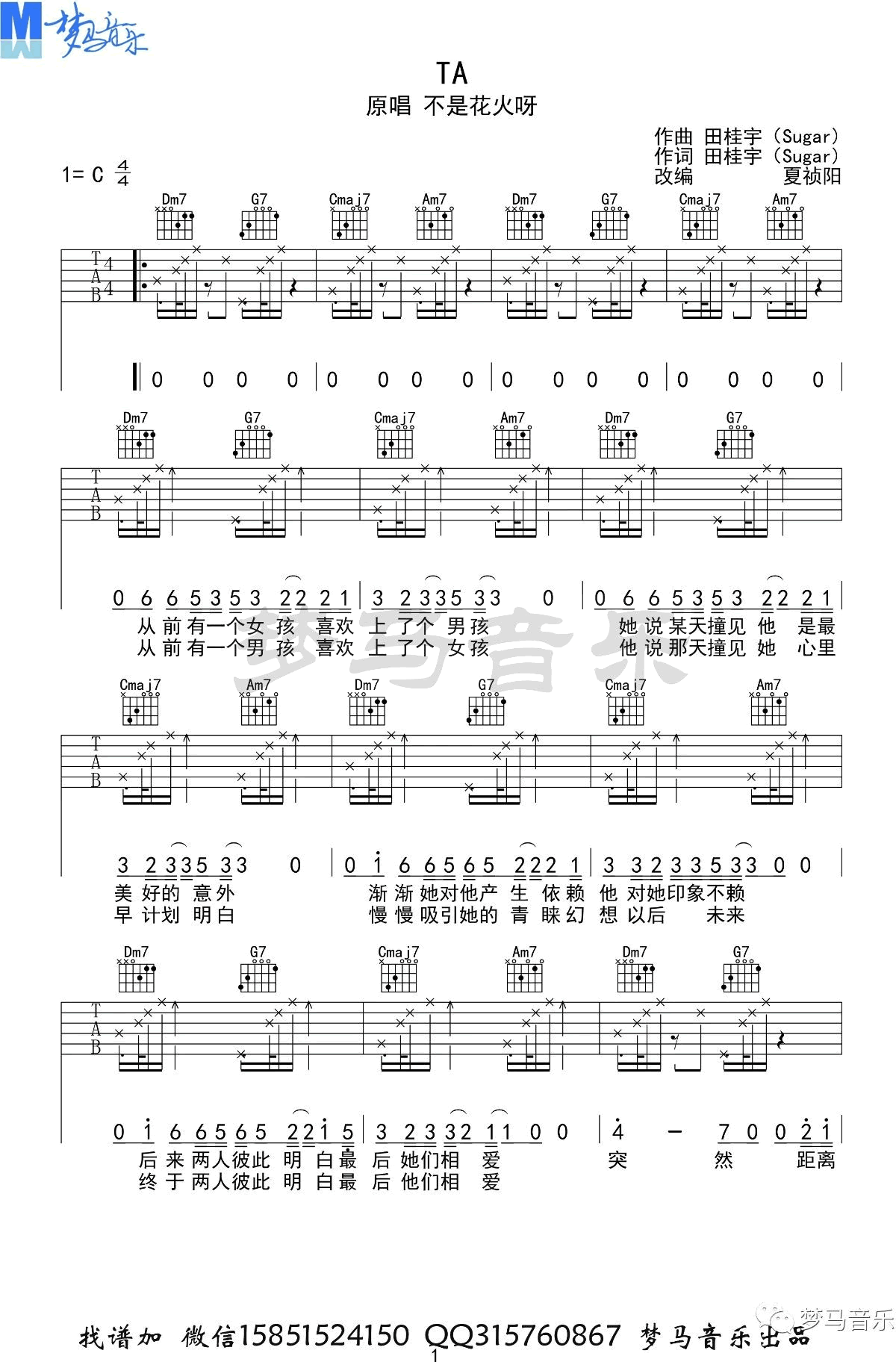 曲谱介绍: 不是花火呀《TA》吉他弹唱谱,共有4张高清图谱。