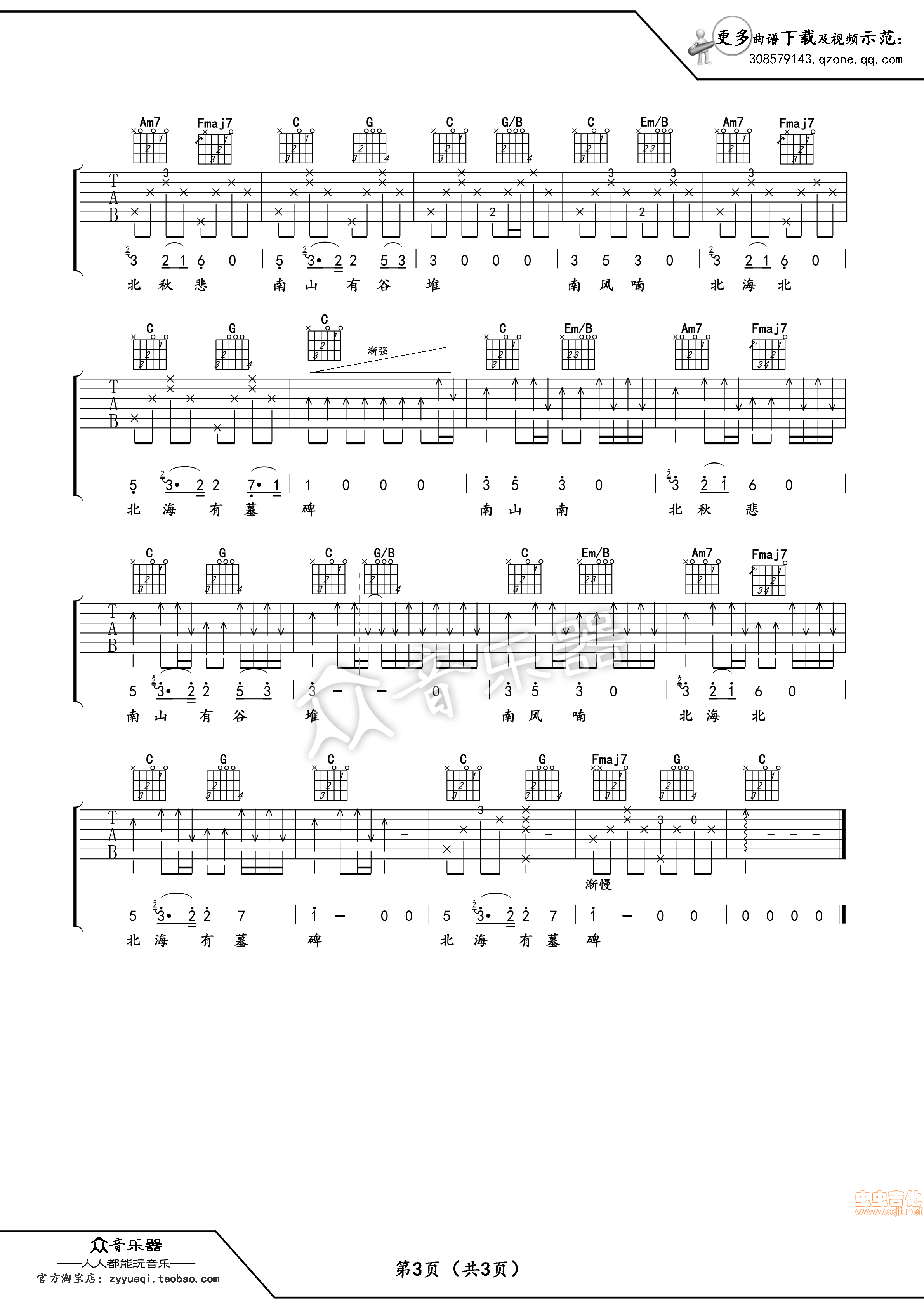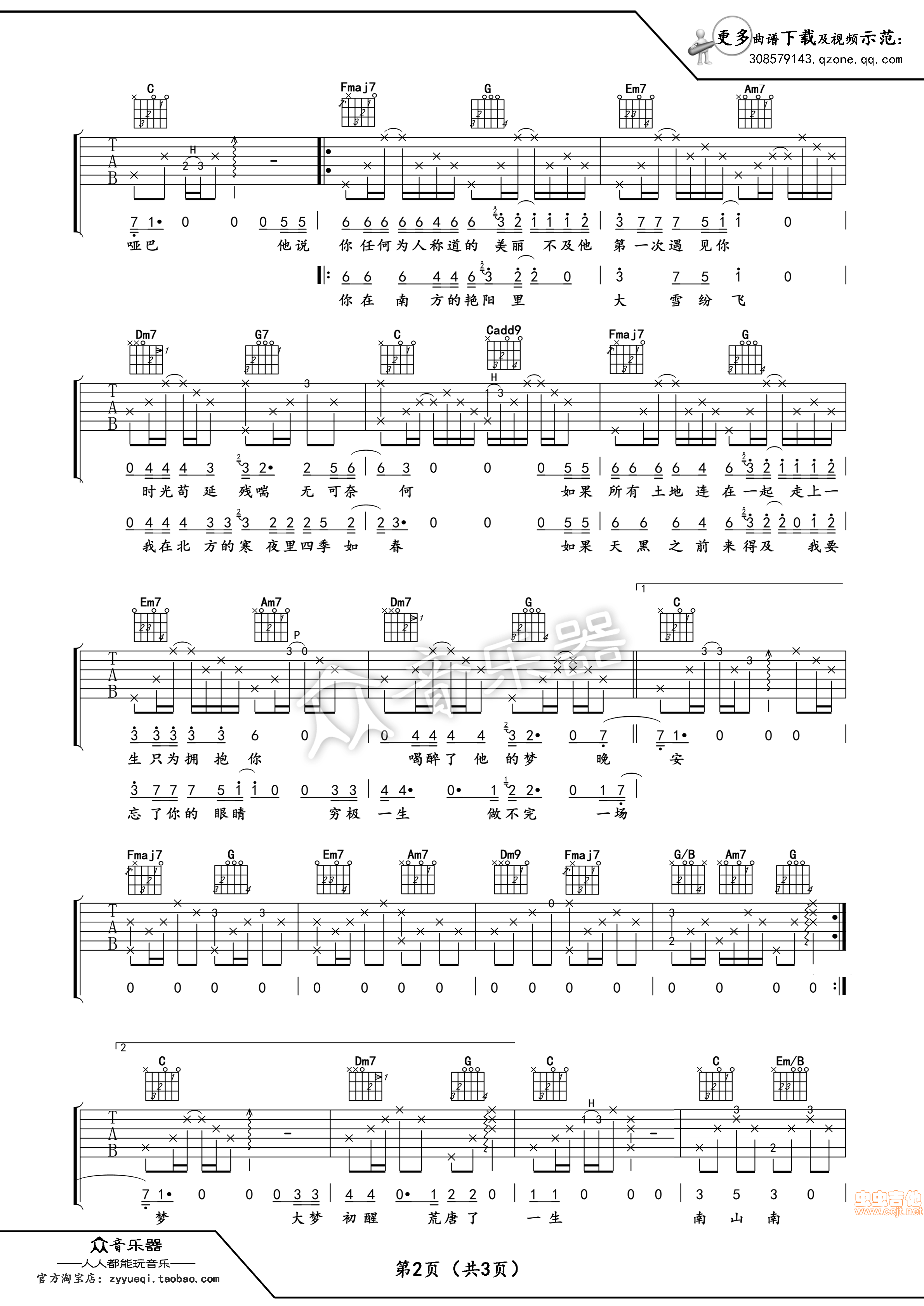 曲谱介绍: 卢家兴《卢家兴南山南中国好声音张磊》吉他弹唱谱,共有3张高清图谱。