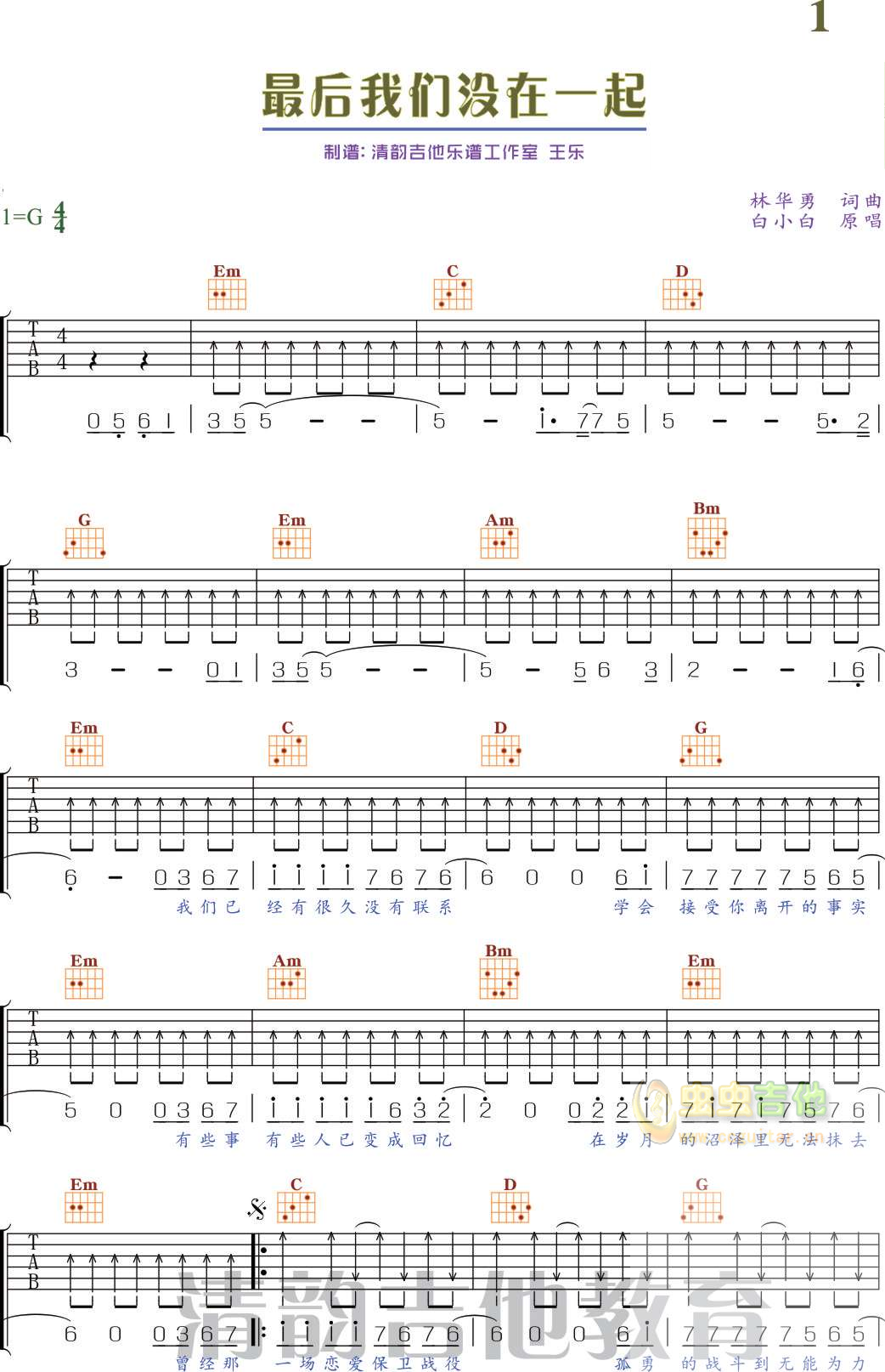 曲谱介绍: 最后我们没在一起《最后我们没在一起白小白图片》吉他弹唱谱,共有2张高清图谱,免翻页排版设计。