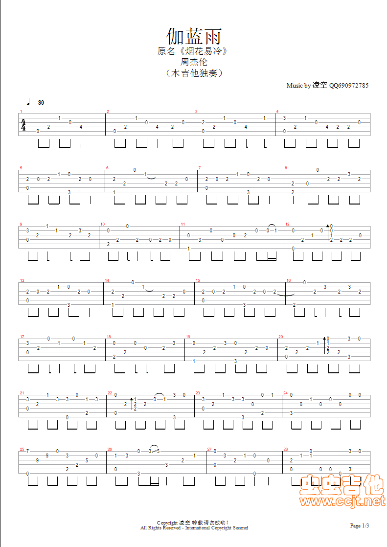 当前位置:琴谱网>吉他独奏>伽蓝雨 烟花易冷