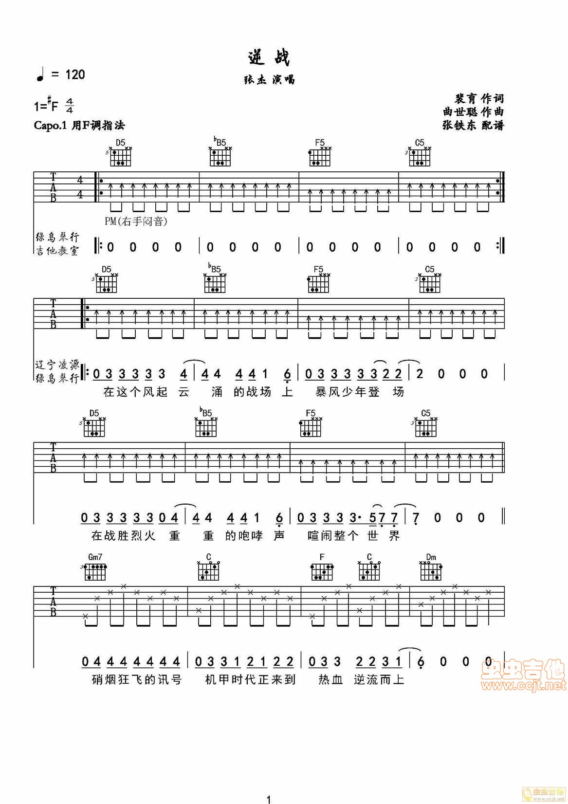 曲谱介绍: 《逆战》吉他弹唱谱,共有3张高清图谱。