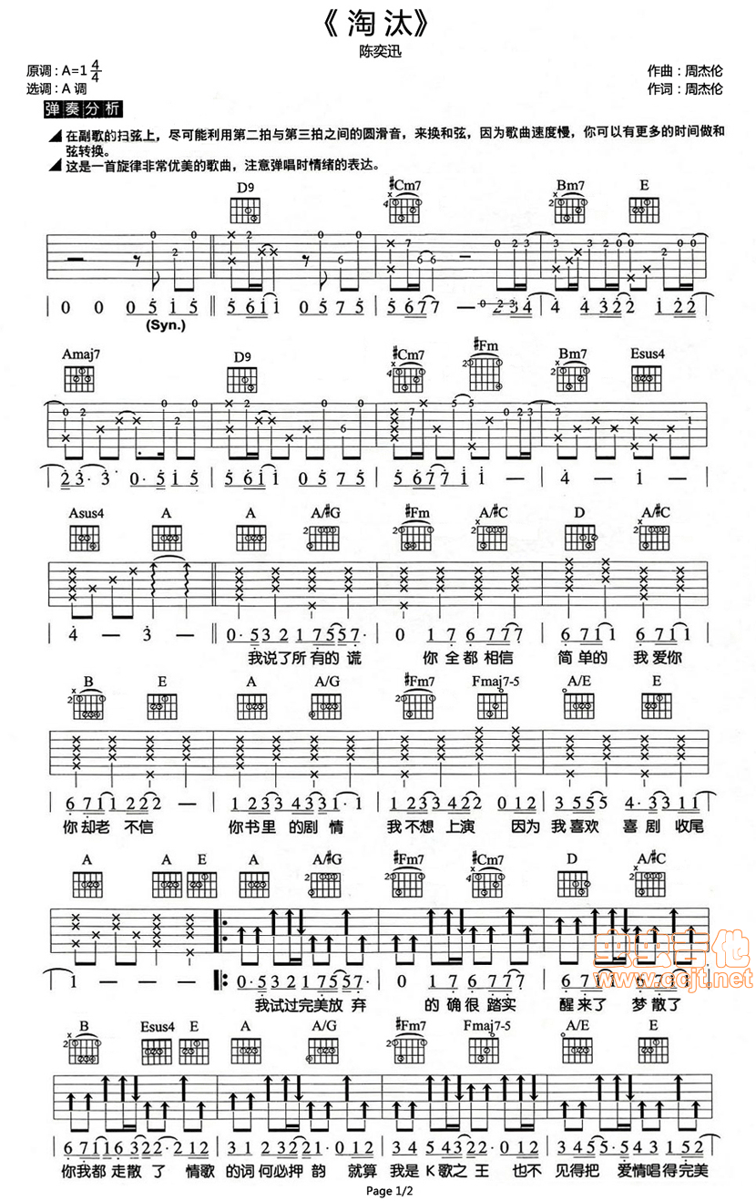 当前位置:琴谱网>吉他弹唱>淘汰