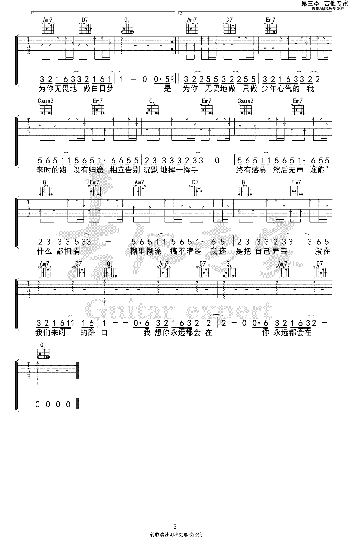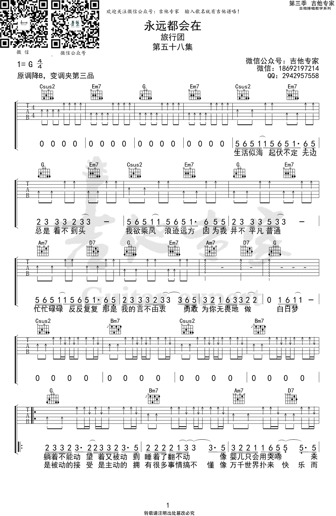曲谱介绍: 旅行团《永远都会在》吉他弹唱谱,共有3张高清图谱。