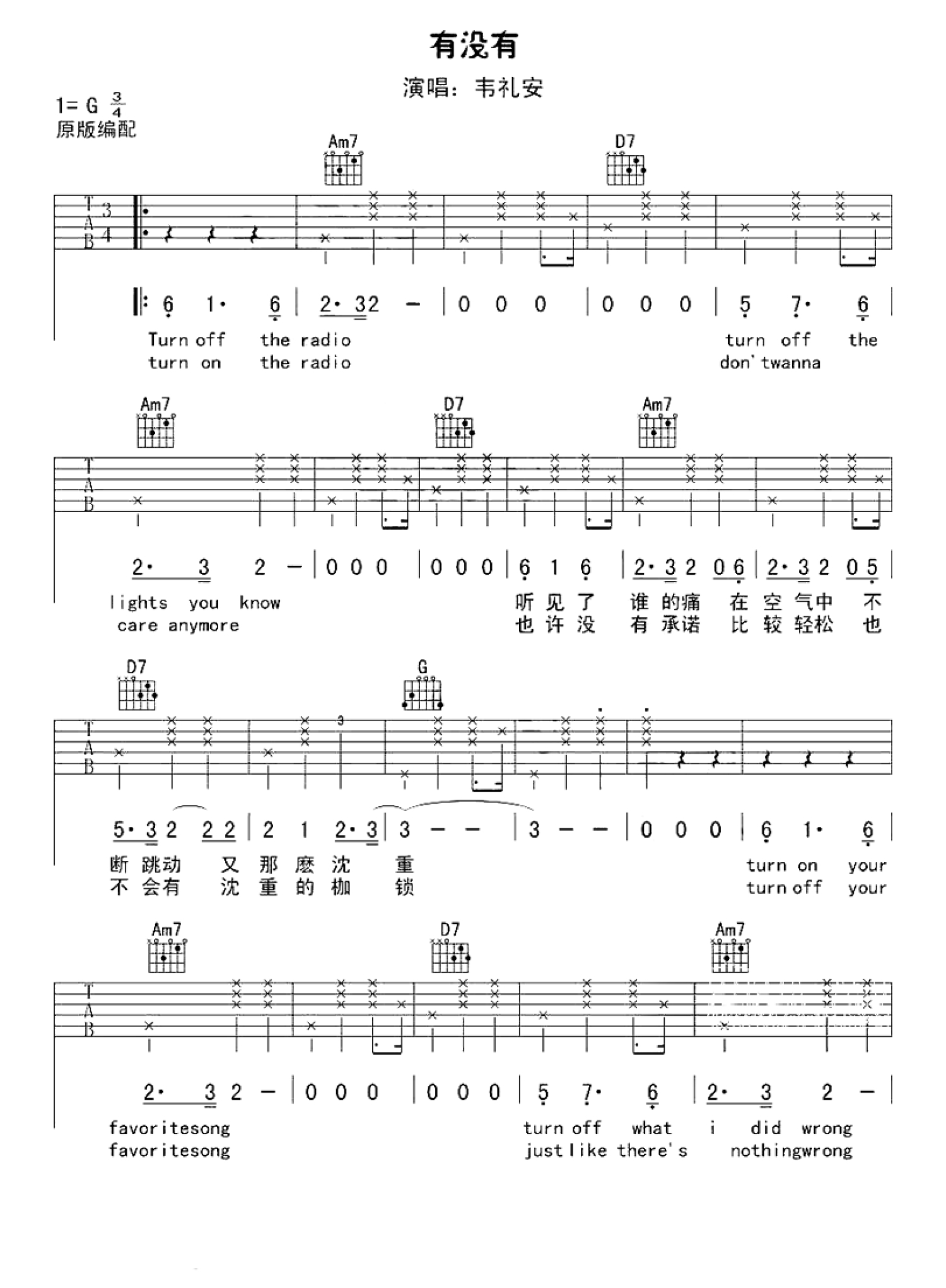 有没有吉他谱 - 韦礼安 - G调吉他弹唱谱