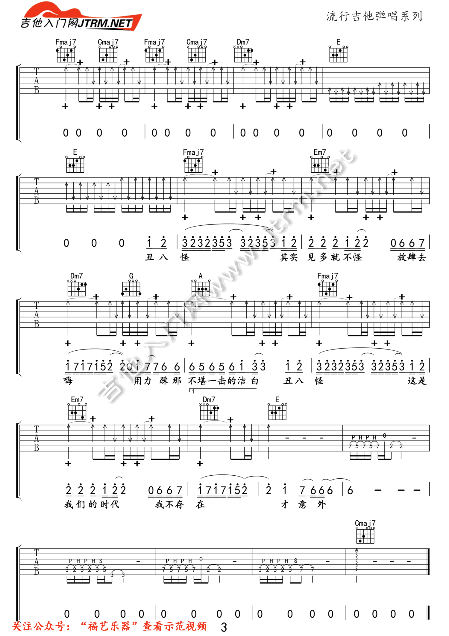 当前位置:琴谱网>吉他弹唱>丑八怪