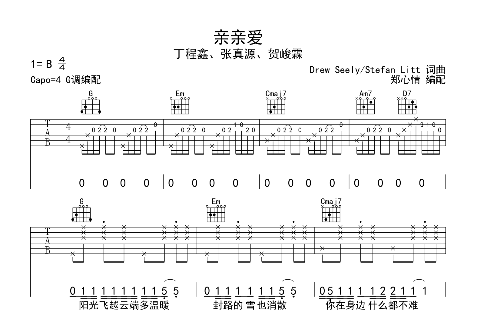 亲亲爱吉他谱 - 丁程鑫/张真源/贺峻霖 - G调吉他弹唱谱