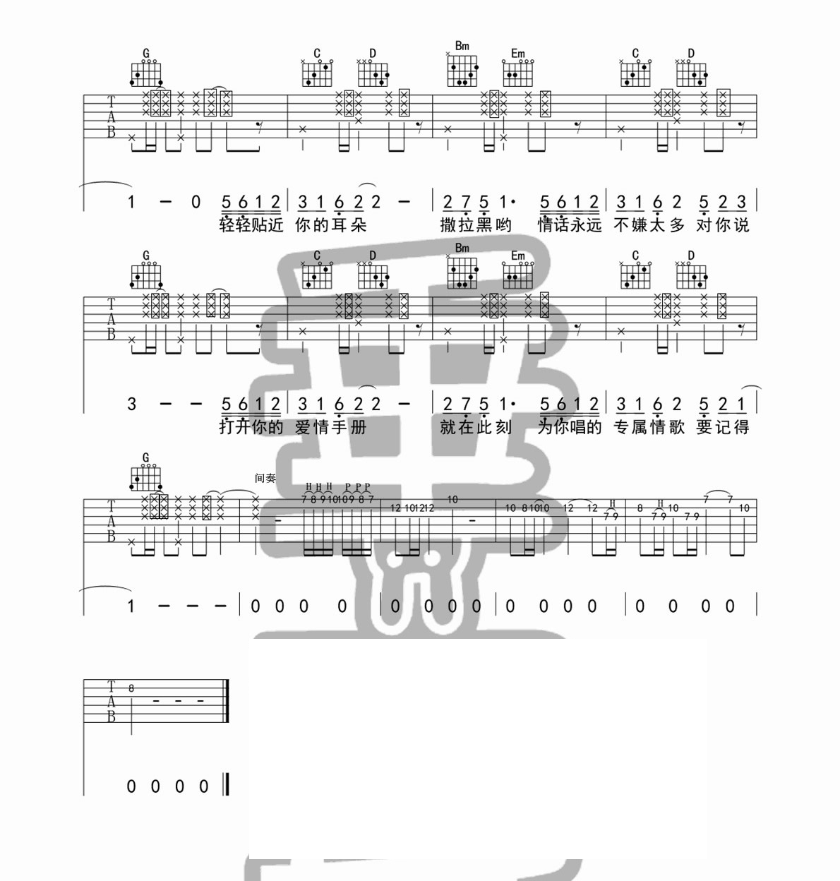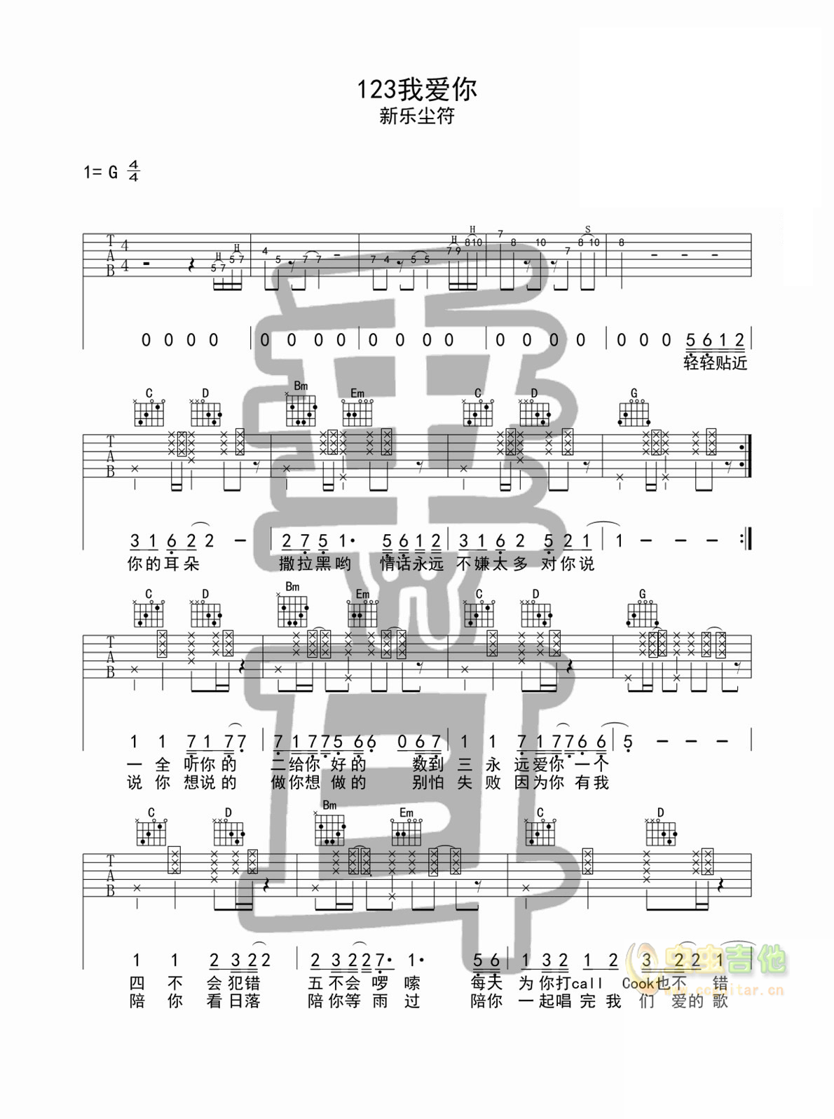 123我爱你 新乐尘符 图片吉他谱 - 123我爱你 - 吉他弹唱谱