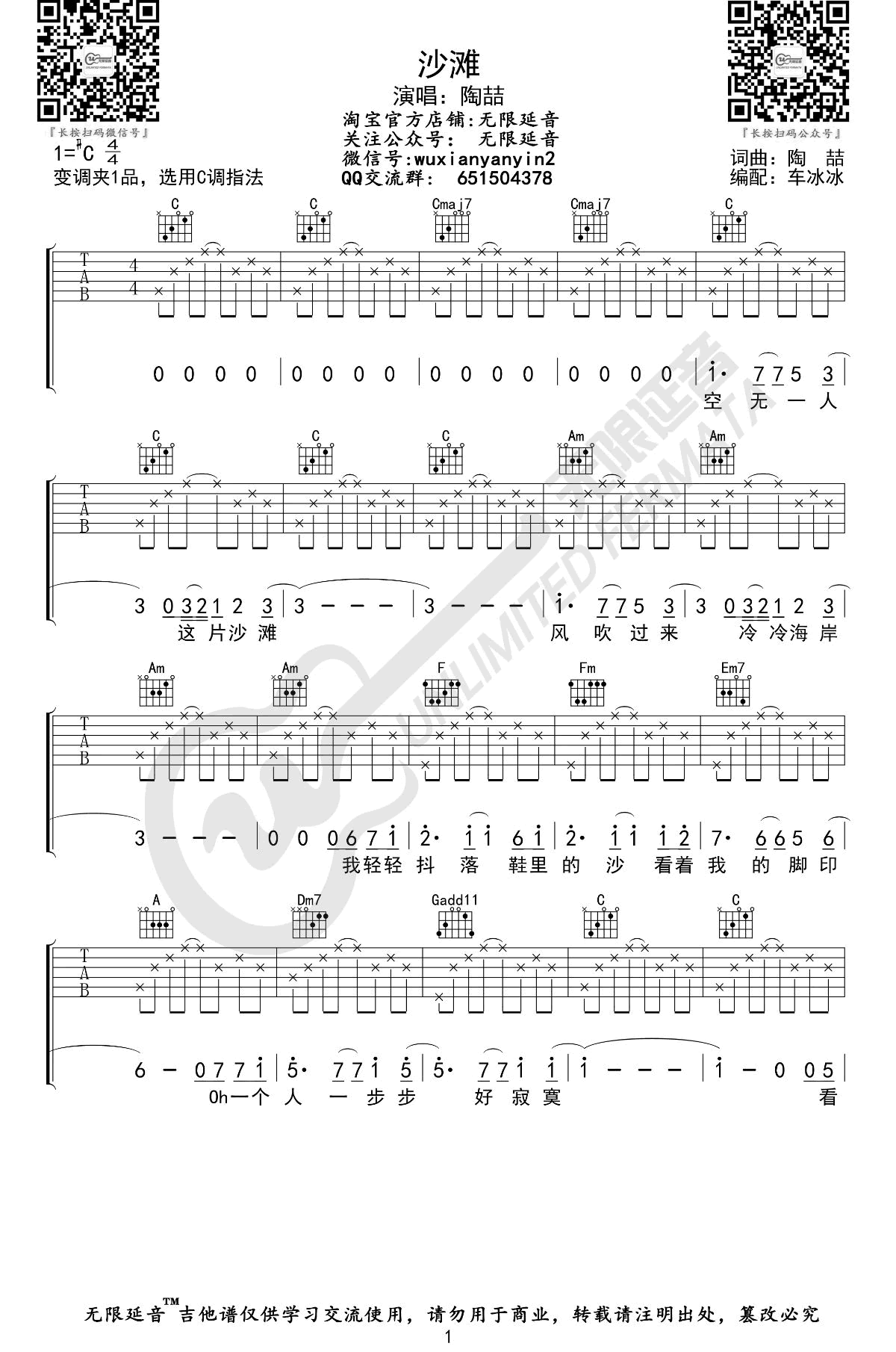 曲谱介绍: 陶喆《沙滩》吉他弹唱谱,共有3张高清图谱。