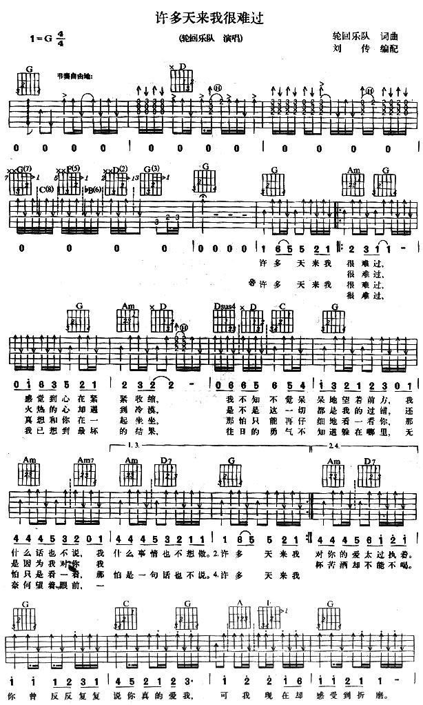 当前位置:琴谱网>吉他弹唱>许多天来我很难过 轮回乐队 图片