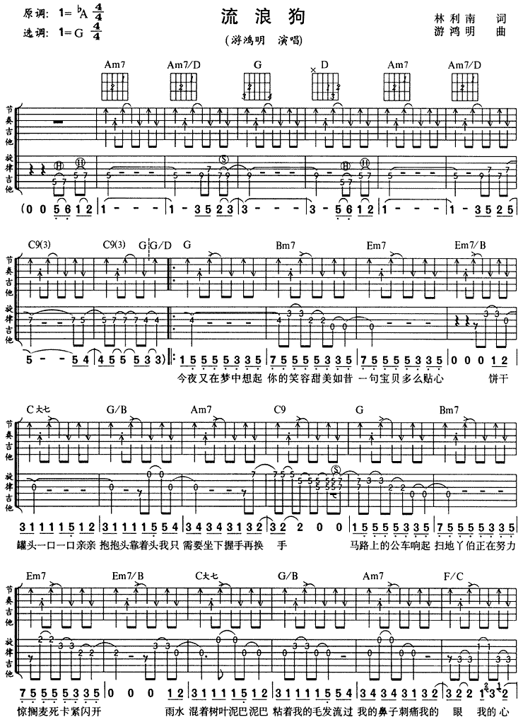流浪狗 游鸿明 图片吉他谱 - 流浪狗 - 吉他弹唱谱