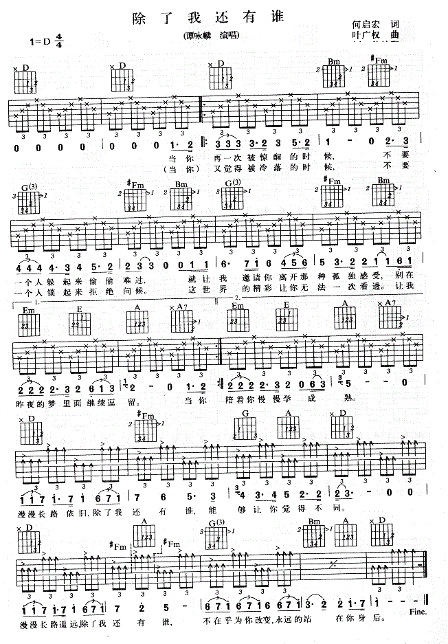 当前位置:琴谱网>吉他弹唱>除了我还有谁 谭咏麟 图片