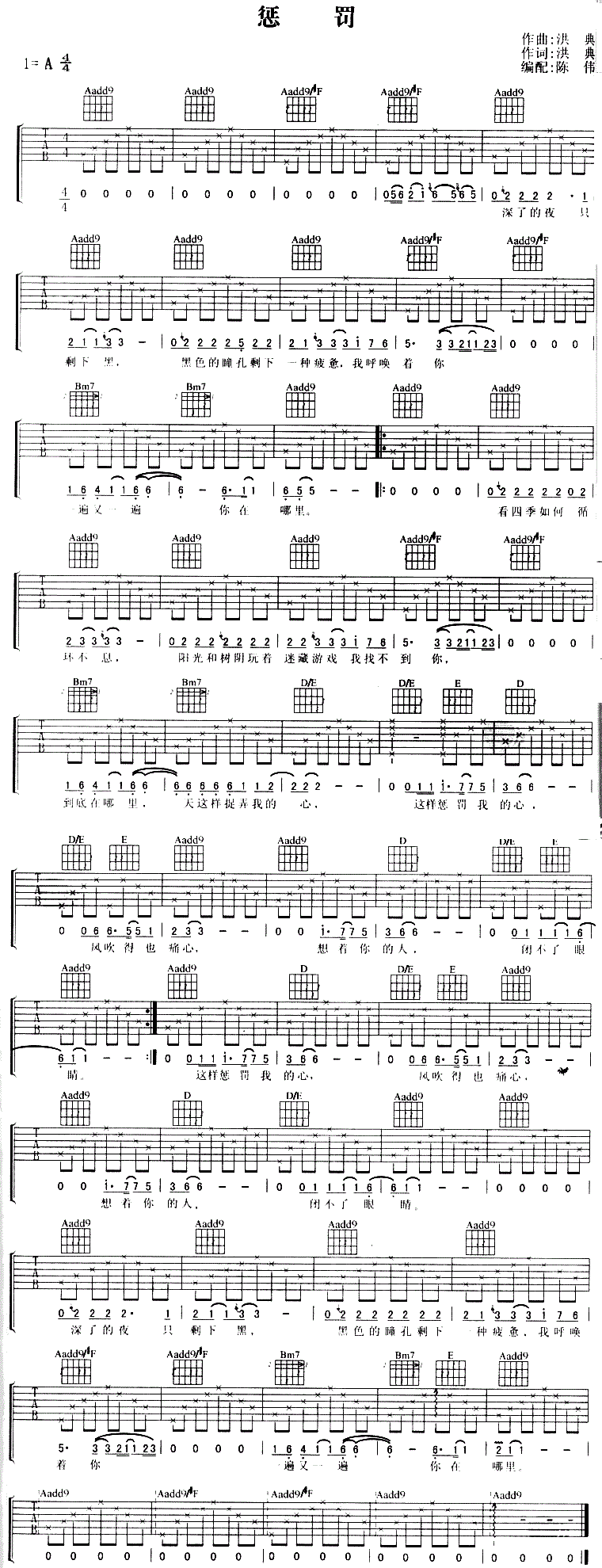 当前位置:琴谱网>吉他弹唱>惩罚 阿杜 图片