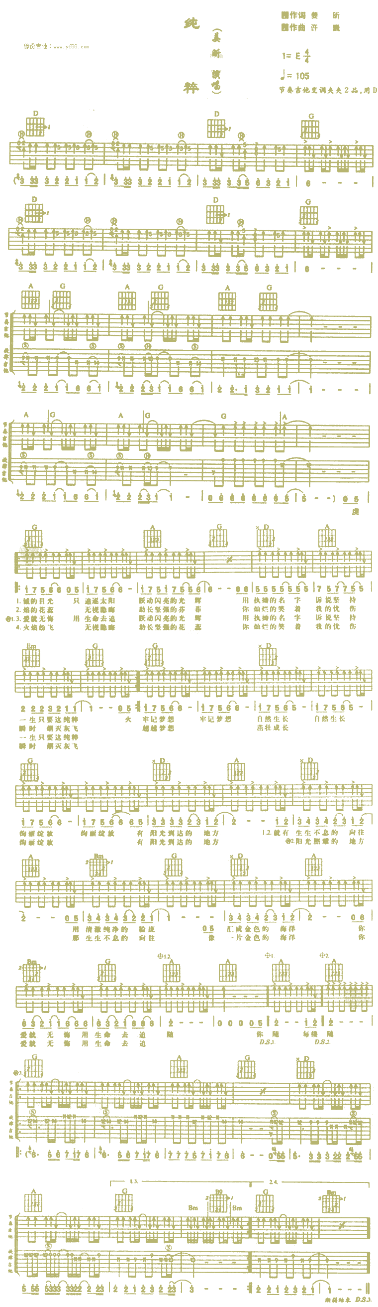 纯粹 姜昕 图片吉他谱 - 纯粹 - 吉他弹唱谱