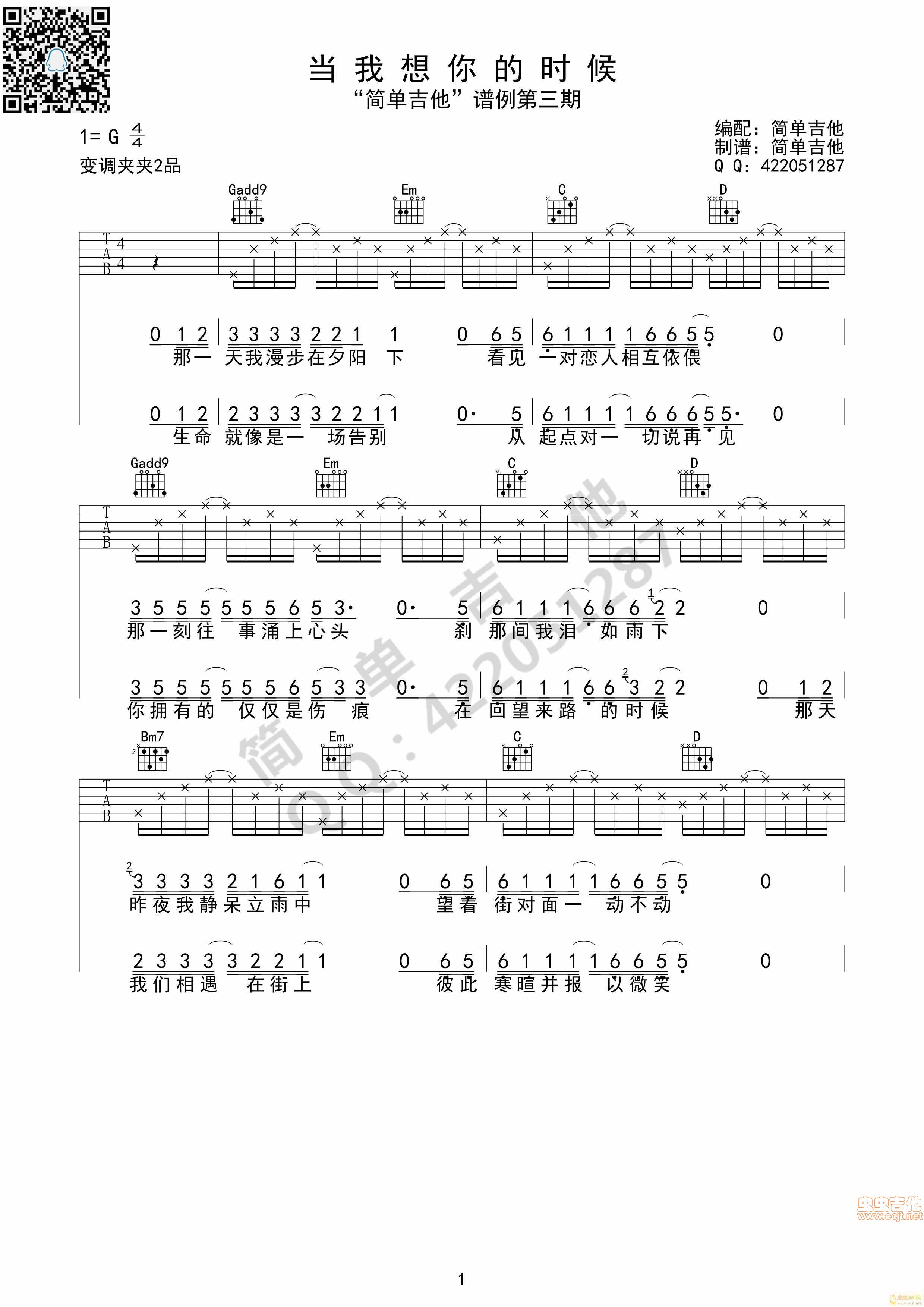 当我想你的时候吉他谱 - G调吉他弹唱谱