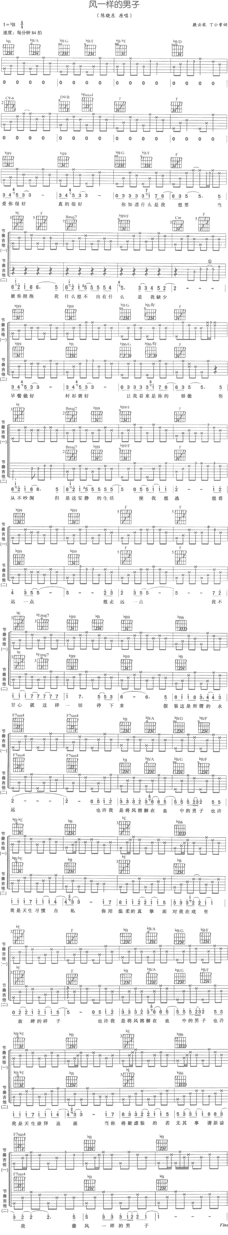 风一样的男子 陈晓东 图片吉他谱 - 风一样的男子 - 吉他弹唱谱