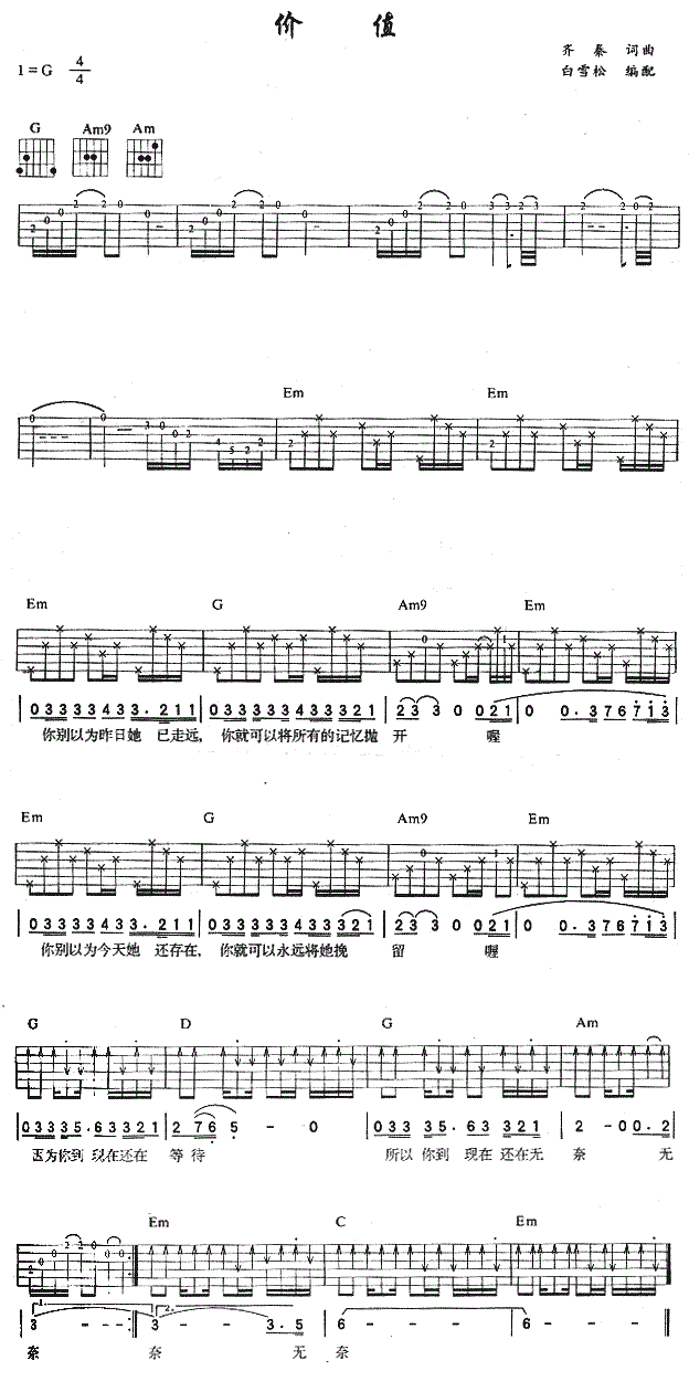 当前位置:琴谱网>吉他弹唱>价值 齐秦 图片