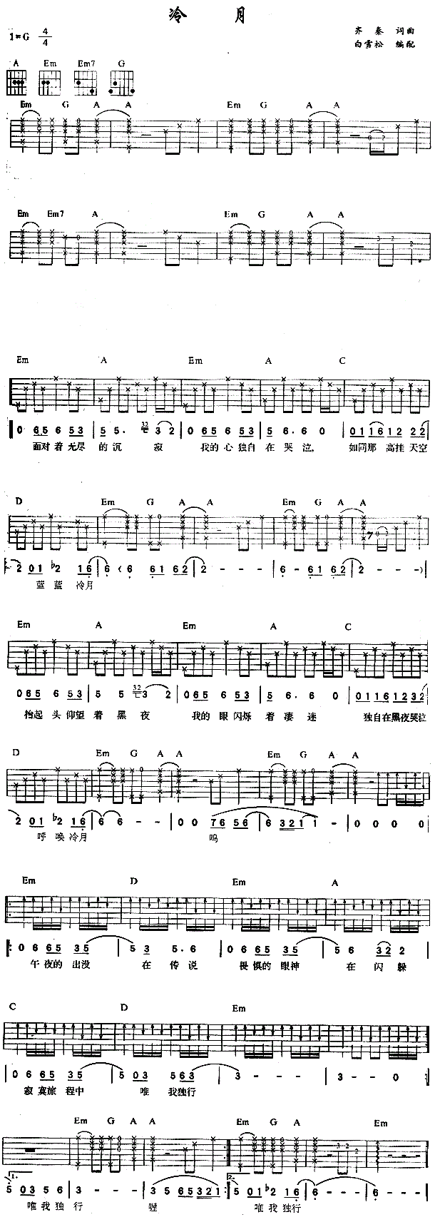 当前位置:琴谱网>吉他弹唱>空白 齐秦 图片