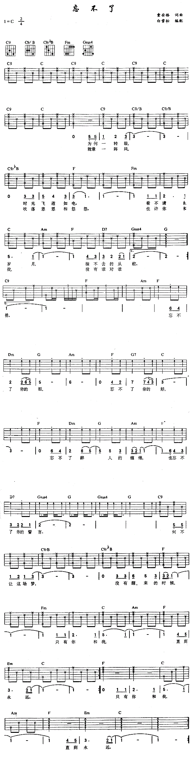 当前位置:琴谱网>吉他弹唱>忘不了 童安格 无飘飘标准版
