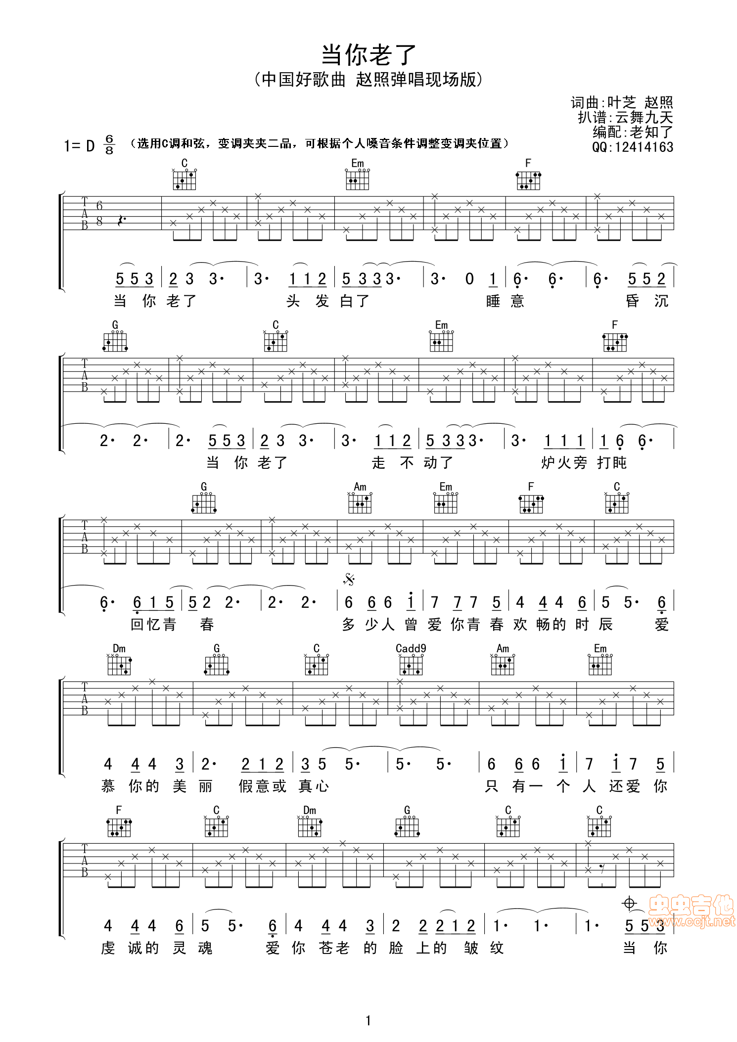 当你老了(老知了吉他谱 - 吉他弹唱谱