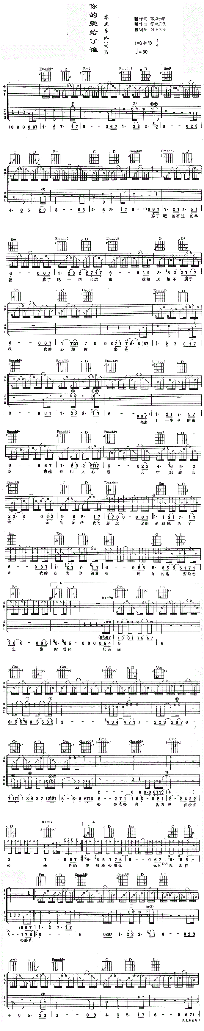 你的爱给了谁 零点乐队 图片吉他谱 - 你的爱给了谁 - 吉他弹唱谱