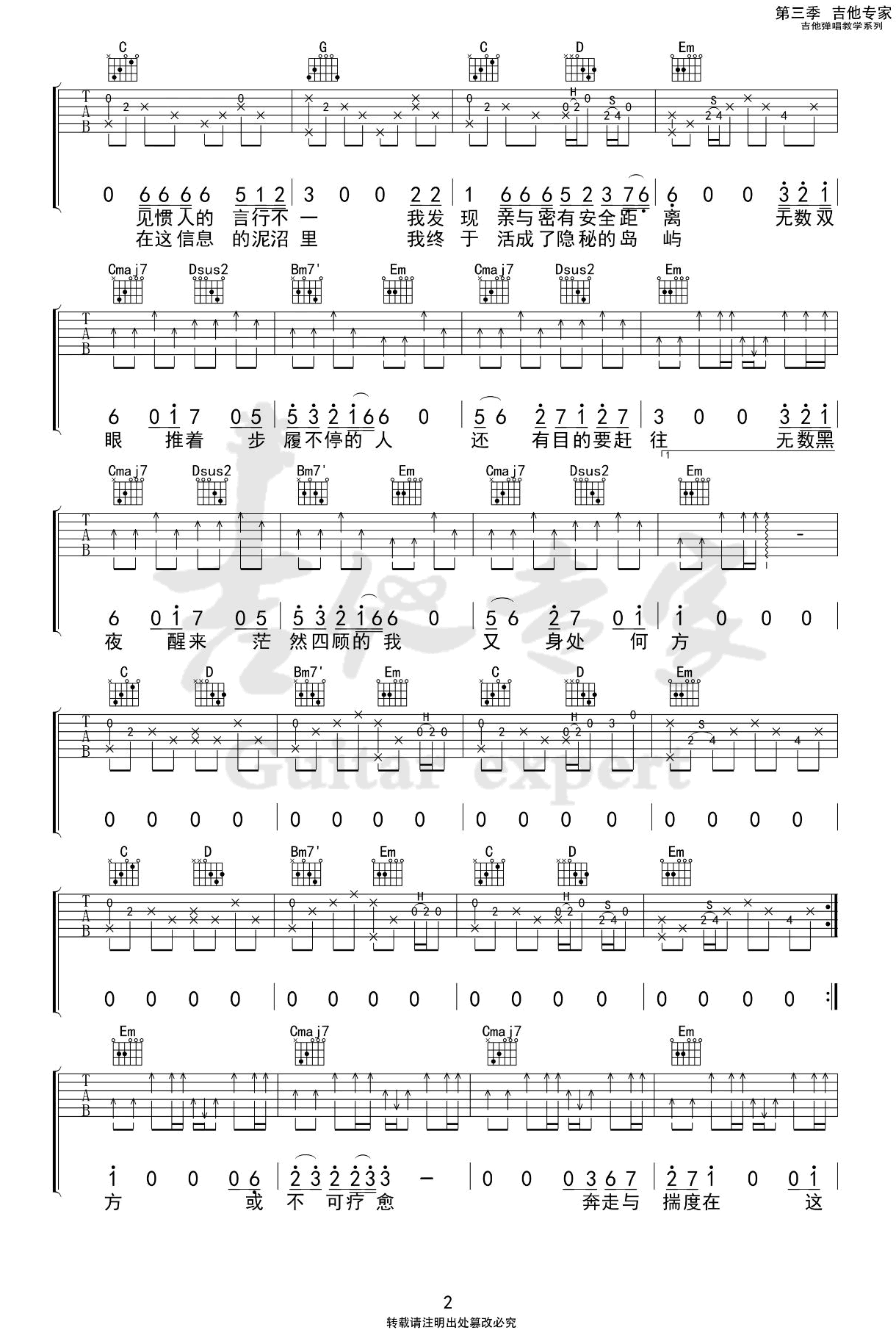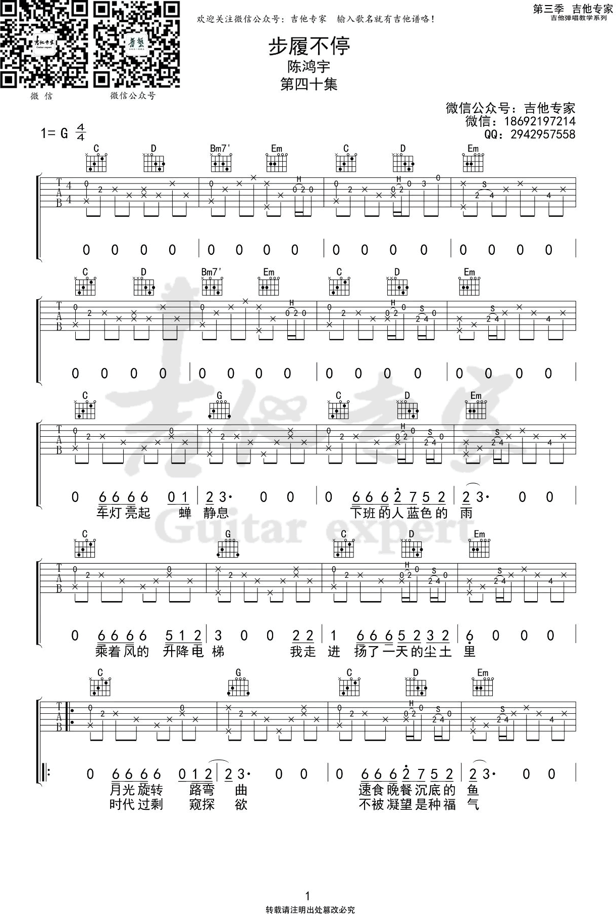 曲谱介绍: 陈鸿宇《步履不停》吉他弹唱谱,共有3张高清图谱。