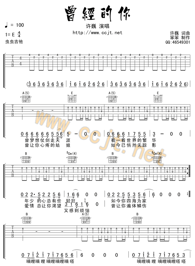 曾经的你吉他谱 - 吉他弹唱谱