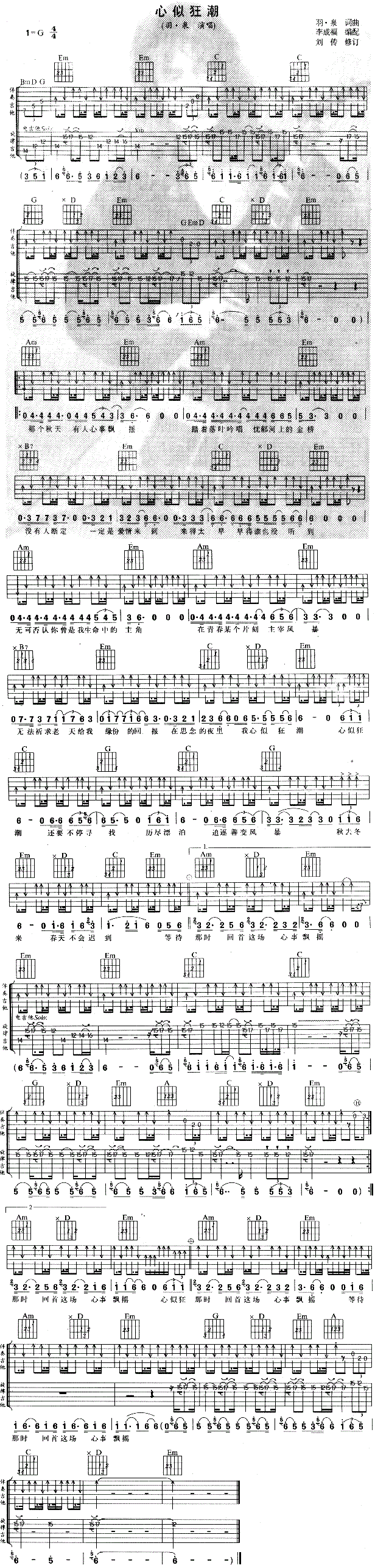 心似狂潮 羽泉 图片吉他谱 - 心似狂潮 - 吉他弹唱谱