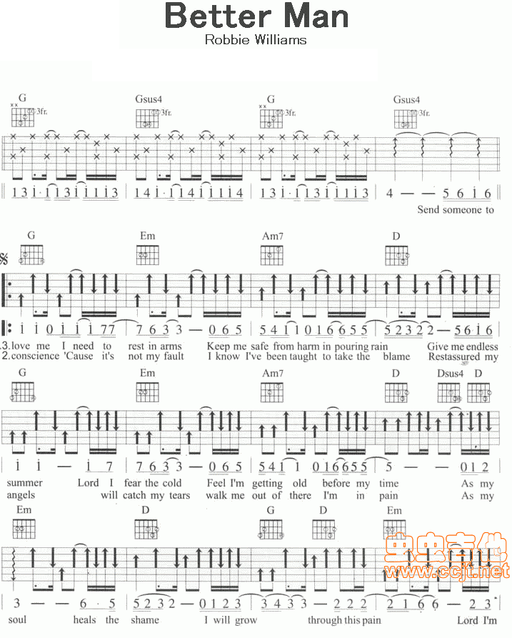 Better man 简单G调六线吉他谱 - Better - G调吉他弹唱谱
