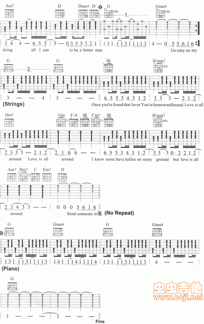 当前位置:琴谱网>吉他弹唱>Better man 简单G调六线