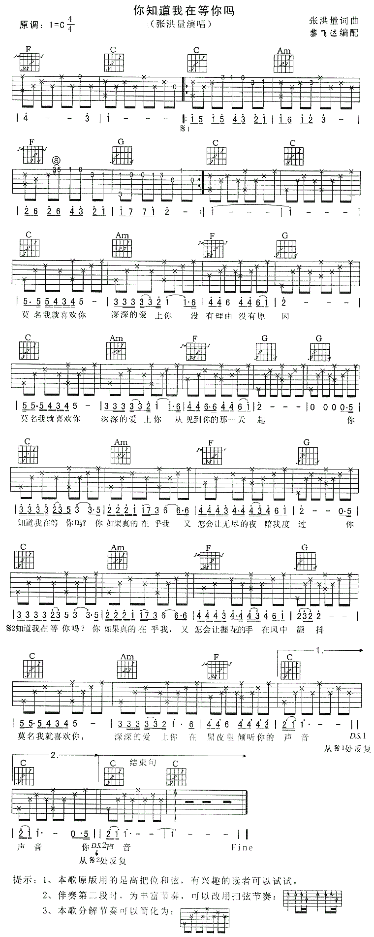 当前位置:琴谱网>吉他弹唱>你知道我在等你吗 张洪量 图片