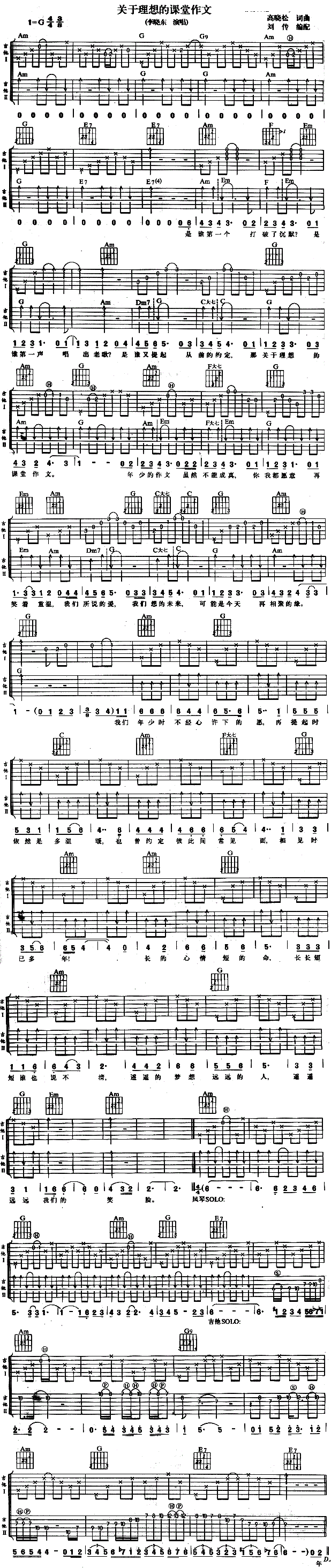关于理想的课堂作文 李晓东 图片吉他谱 - 关于理想的课堂作文 - 吉他弹唱谱