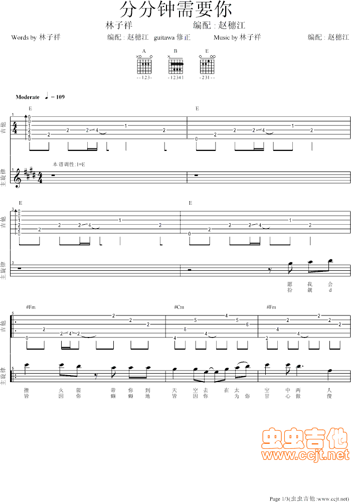 分分钟需要你吉他谱 - 分分钟需要你 - 吉他弹唱谱