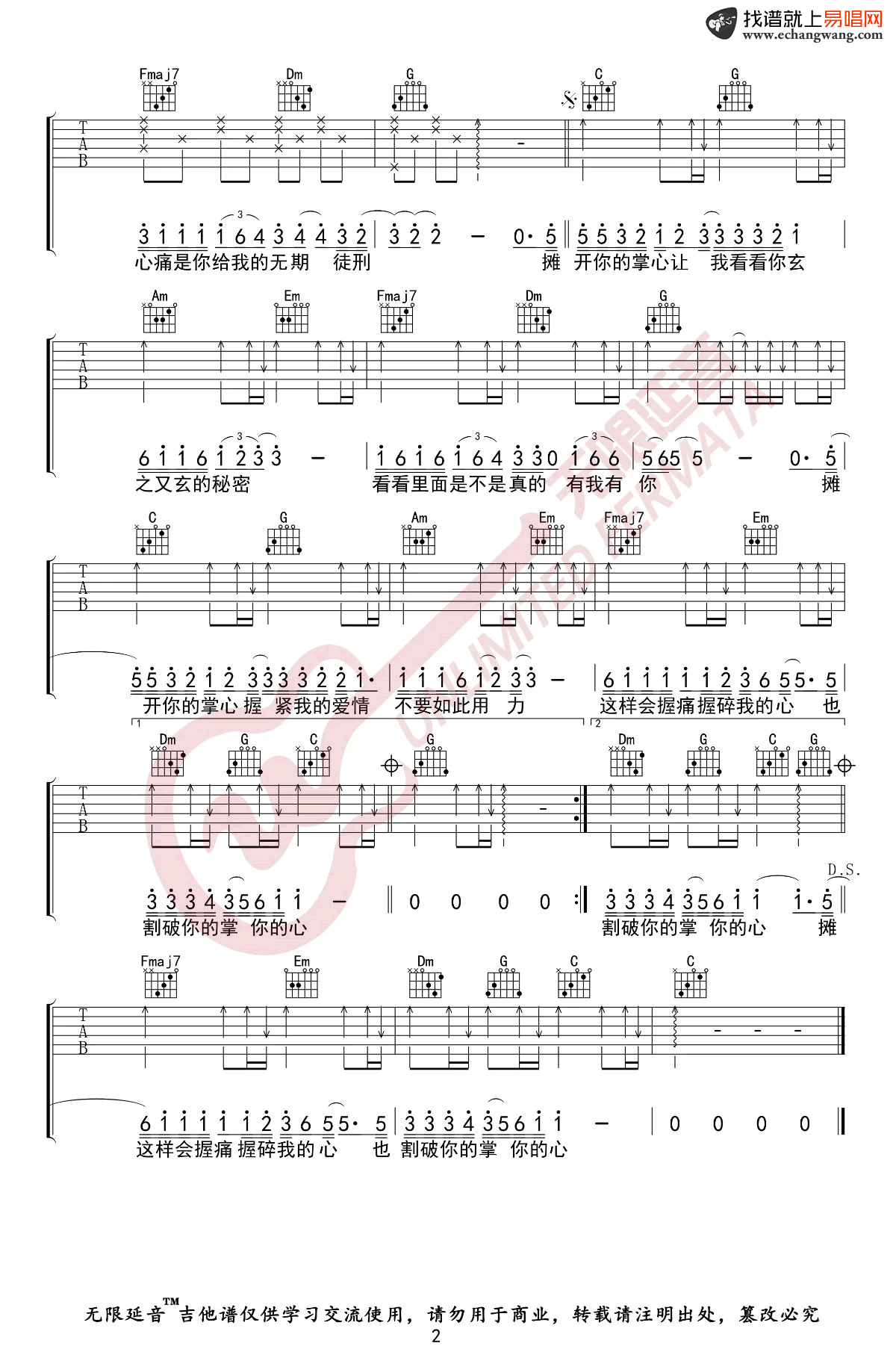 当前位置:琴谱网>吉他弹唱>掌心