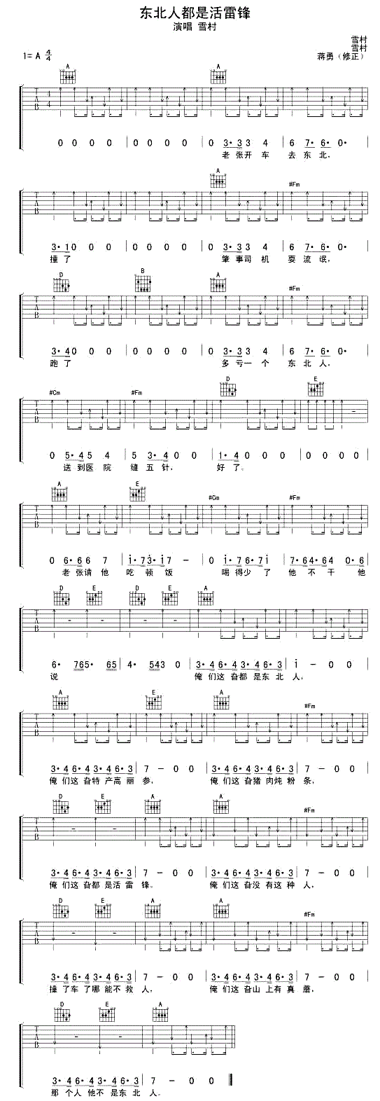 东北人都是活雷锋 雪村 图片吉他谱 - 东北人都是活雷锋 - 吉他弹唱谱